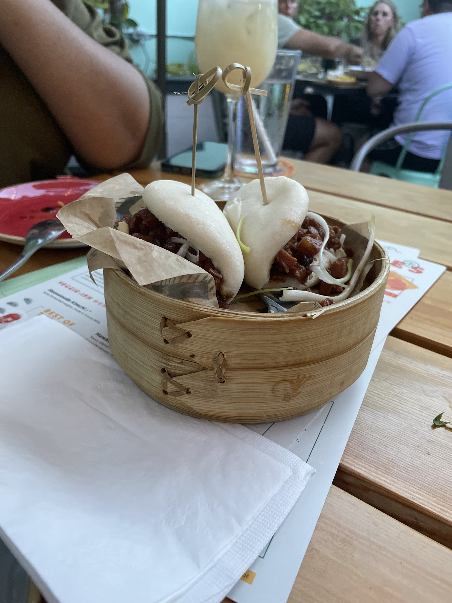 The food: We had 4 plates Here they are ranked from worst to best (worst is relativeβ¦as even the worst plate was still really good by normal standards) unfortunately the duck Bao ranks last from our selection. it was cooked well, but it wasnβt flavorful and there wasnβt enough meat in the bun Chinese BBQ Bao was next, much better flavor on this Bao, definitely wanted more, but there is a balance of flavoring needed when the Bao bun is present as it takes some of the flavor. Donβt think theyβve found that balance. Still good though, definitely devoured the whole thing. Bulgogi skewers - canβt go wrong with Bulgogi. Perfectly cooked beef skewers with just the right amount of flavor. The hidden gem in this dish though, is the side of house-made kimchi. I canβt describe it without using an oxymoron, but it tasted fresh. The flavor and kick were perfect. The two flavors of the Bulgogi and Kimchi are the perfect match of elegant and spicyβ¦.now thatβs a KDrama Iβd binge. (Side note: Kimchi isnβt for everyone, if youβve never had it, this is a great place to try it, if you like kimchi just go ahead and order extra. Itβs worth it.) Then thereβs the Korean wings - never heard of double fried wings before. I was skeptical at first. Double fried just means crunchier. So the crunchy outside with the sweetness of the sauce gave it an almost βcandiedβ texture and flavor on the outside, but once you bite in, you get the flavor of some perfectly cooked savory chicken with the slightest kick that ties everything together. It sounds odd, but they rank as one of my top 3 wings of all time.