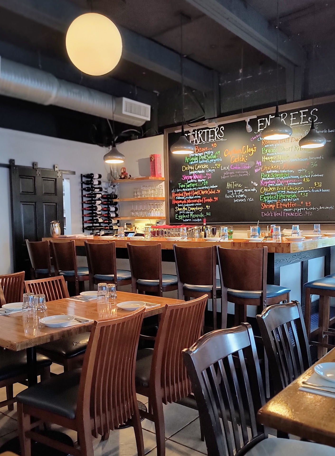Read moreThought we would try a new place. Very small, atmosphere was lacking. Small bar - only serves beer and wine. Menu is compact and written on a chalkboard for everyone to read. We ordered Tomato Bisque which was $12 for a small serving with a pastry top: not bad, but not the best. Also the Fresh mozzarella and tomato at $12; mozzarella was just ok quite firm, Florida tomatoes which aren’t very good. And the entree of yellow tail at $36 was very tasty but not worth the price. Servers were ok (but only after we broke the ice). At first they seemed very distant, didn’t try hard to offer good service, and they did not have much of a sense of humor. We don't mind spending for a good meal, and we have dined at more expensive places - but they offer more than this place does so it is worth it. We might consider a return - but ONLY if the prices were lower. It is not...