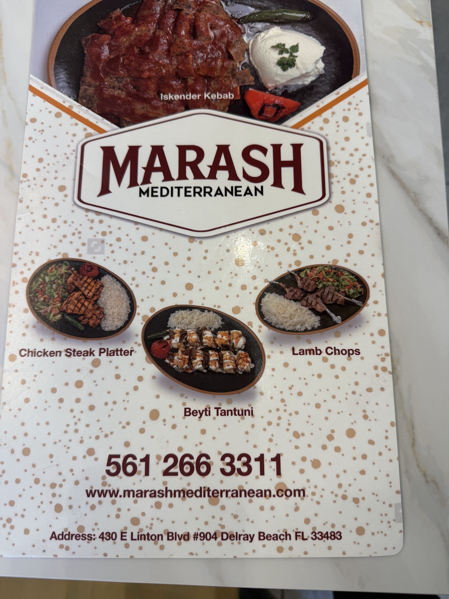 The Delray branch of Marash is a streamlined offshoot of the original Hallandale location, offering a tighter menu that puts the spotlight on Doner Kebab, Lamb Chops, and Chicken. While the breadth of options is scaled back, the kitchen clearly knows what it does wellâand sticks to it.