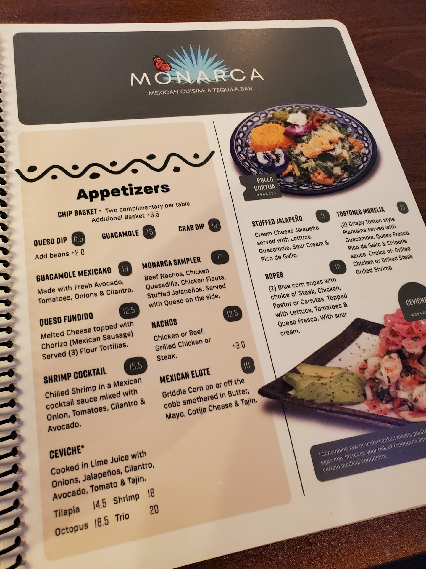 Read moreMonarca is a fantastic addition to the local dining scene, offering a superb Mexican experience that hits all the right notes. From the moment you step in, you're greeted by a modern and impeccably clean atmosphere that sets a welcoming tone. I started with the appetizer sampler, which was an absolute delight – every bite was incredibly tasty and showcased the kitchen's skill. Beyond the delicious food, the staff at Monarca are genuinely friendly and attentive, making for a truly enjoyable dining experience. The menu is extensive, offering a wide array of options to satisfy any craving, and their weekly specials provide even more exciting choices. Plus, parking is adequate, which is always a bonus. Whether you're looking for a casual weeknight dinner or a lively weekend meal, Monarca delivers on all fronts. Highly...