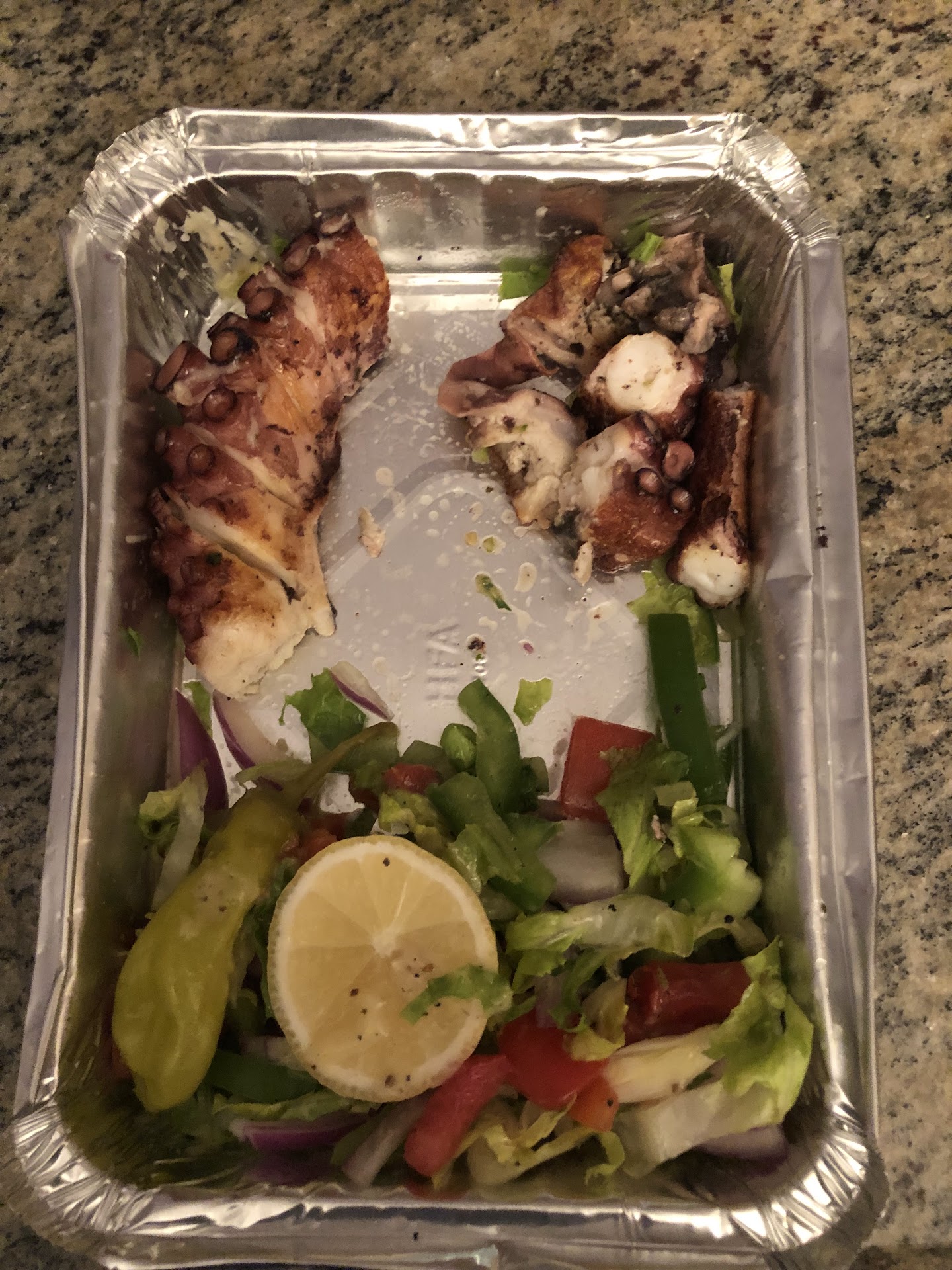 Gyro dinner… the 2nd sign of distress… The chef must have been bored… we got a plate of a small portion of dry gyro meat, a heap of over cooked soggy vegetables, and potatoes that seem to have been sitting in the back for a while. There was also a dry salad that didn’t even have olive oil or any sort of flavor option. When I asked if the gyro plate came with pita, I was disappointed to find out that it didn’t.