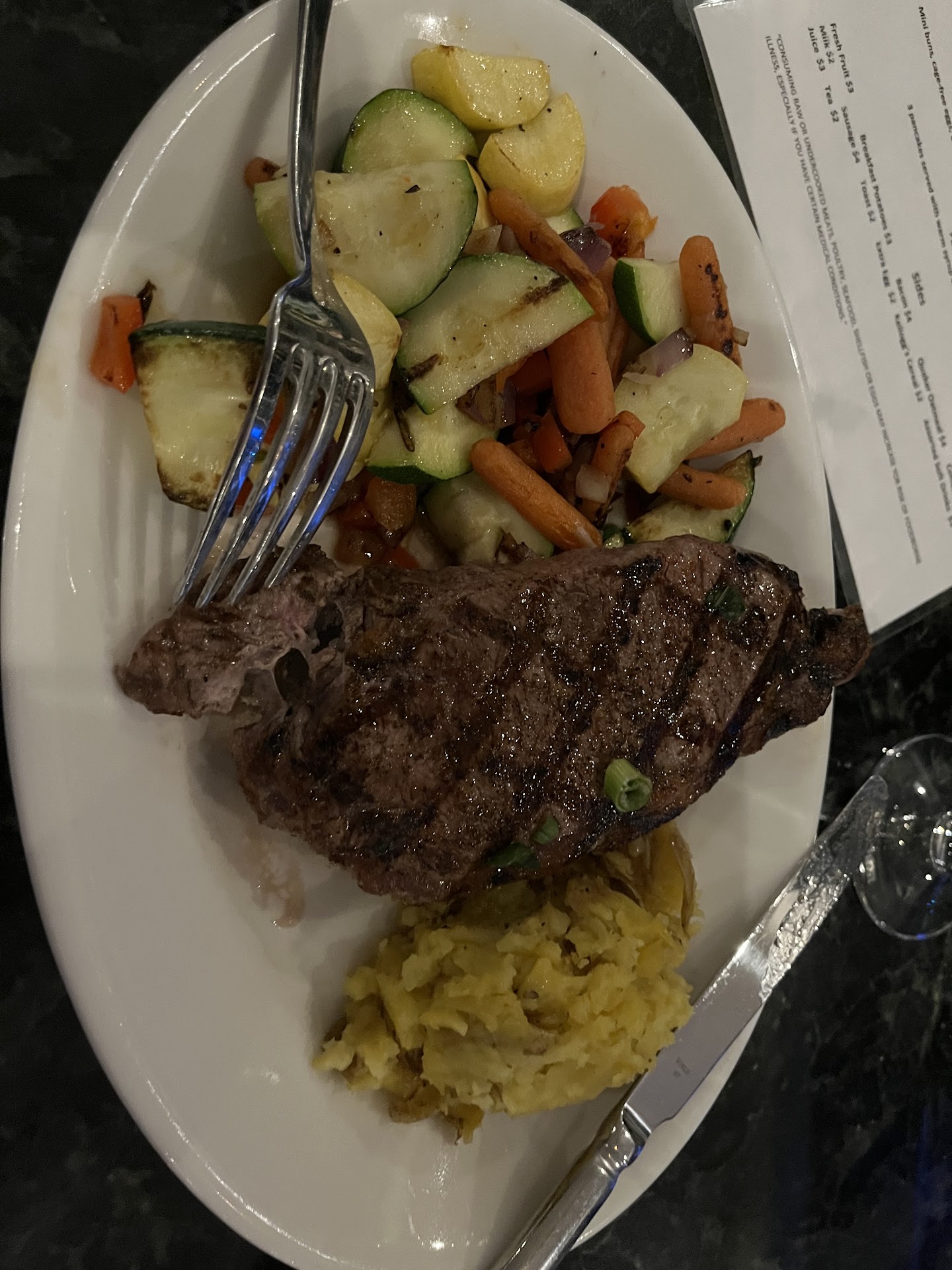 The menu offered a wide variety of options, from traditional favorites to more unique and creative dishes. I opted for the chef's special, which was a perfectly cooked steak with a delicious side of roasted vegetables. The flavors were expertly balanced and the presentation was top-notch.