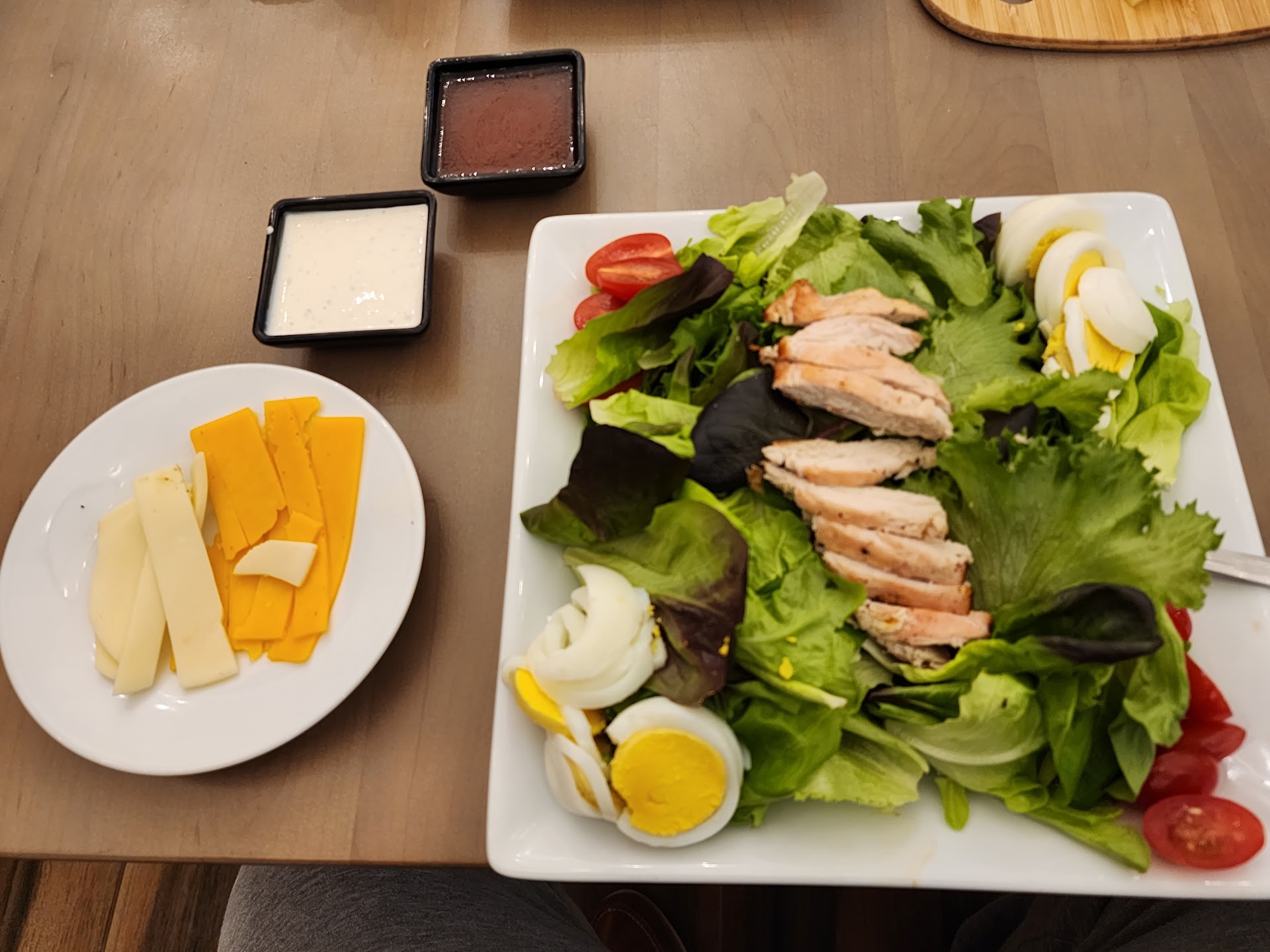 Read moreThis restaurant is located inside the Hilton Hotel. I gave their grilled chicken salad a shot and the sauces absolutely blew me away. The ranch tasted similar to Wing Stop recipe and they have this raspberry vinaigrette and it was a good ole time. In between bites of different cheese, veggies and egg and a mix of well seasoned chicken -it felt like a party in my mouth!! Waitress was very friendly and said she's tried the entire menu and made recommendations. How often do you hear that? Presentation was fantastic too. Can't wait to try other...