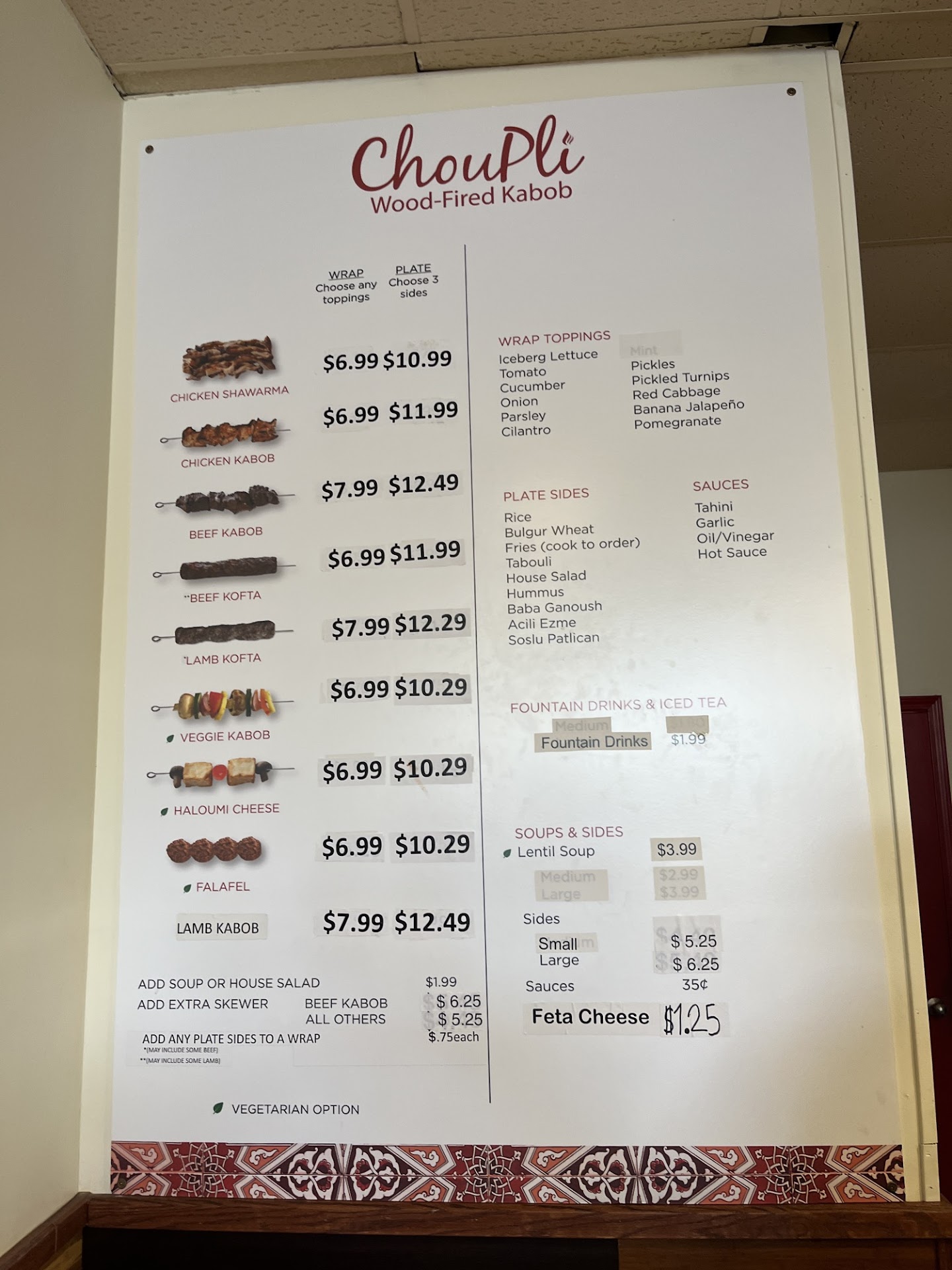 We visited Choupli Wood-Fired Kabob on a blazing 95-degree day, hoping for a quick, flavorful dinner in a cooler atmosphere