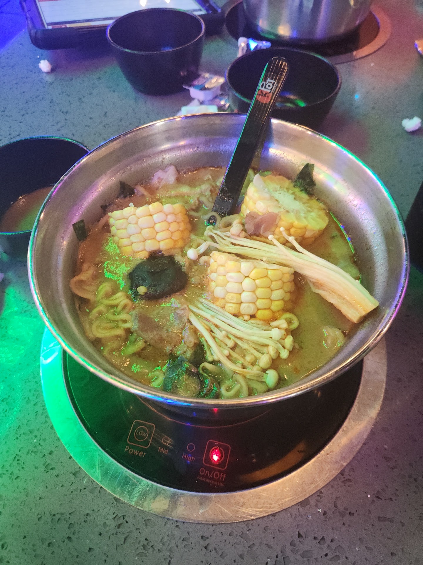 Read moreThis was my first time dining at this type of restaurant. First impression, its overpriced, the information was not clear as to what a serving is. i.e. we had a party of 4 & 3 of us ordered the short ribs, only to be told after our ribs arrived that a serving was 1 rib per person but we could order more if we wanted. 2ndly if u do have leftovers u have to pay an extra fee about $15 to take home the food that u already paid for. Lastly i donât understand the reasoning why everyone has to have the same thing, everyone in your party has to order the bbq or the hotpot but if 1 person wants something different everyone has to order both for an additional $5.00 per person. Thereâs also a $15 excessive food waste charge, so we were afraid to order different meats and try them but didnât in fear that weâd be charged the excessive waste fee. We ordered 4 different proteins for our party of 4, all were very bland except for the short ribs they were very good but had alot of fat on them. Not very many vegetables on the menu. There is an appetizer/buffet bar which has very few items on it & the fries were cold. Our server was nice but not very helpful about how to cook the food. We didnât have a spray bottle of oil at our table in the beginning, thats when i noticed other customers using one to keep the food from sticking on the grill, i then asked our waiter for one which he brought but it leaked every time I would spray it. The best thing about this experience was that it was my sonâs bday & they comped his meal. Nice atmosphere, friendly staff but in my opinion overrated & overpriced for food you have to cook yourself. Take your hard earned $30 per person and get your self a prime cut steak or lobster dinner. Glad i tried it but i wonât be a...