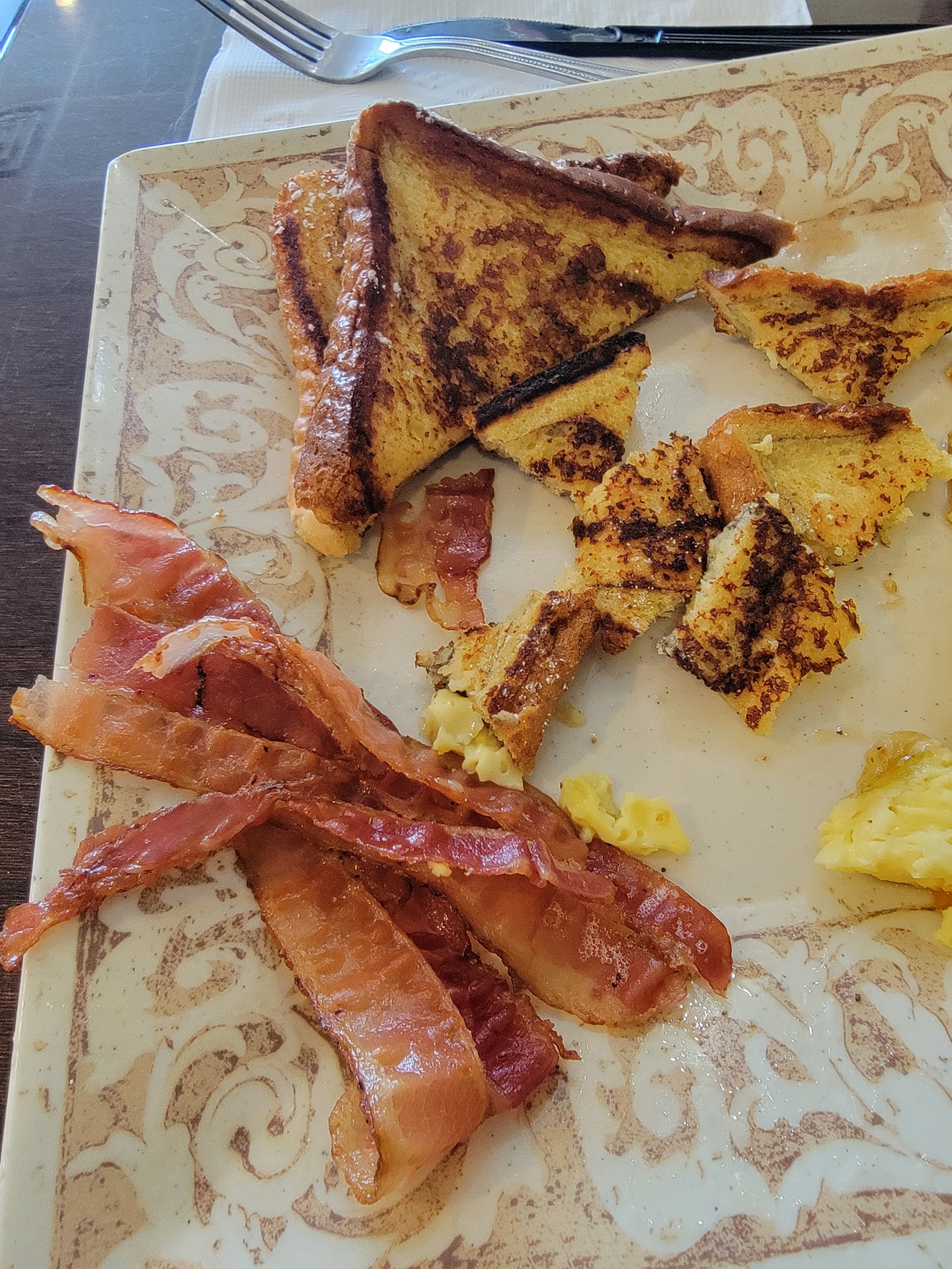 I went to have breakfast this morning at Boston Coffeehouse in Deltona by the Walmart off Saxon. It was my first time there and I trusted the reviews online were accurate, that it was a good place to eat. The special was either pancakes or French toast with eggs/cheese and bacon. I asked for pancakes and added a small drink. She said the smallest they had was only medium. Ok...I got charged for a medium but she she still gave me a small cup. The total was $18.00! Fifteen mins later, the waitress brought my plate to the table. French toast was on the plate instead of pancakes and everything on it was cold. I didn't say anything about the pancakes, just asked if it could be warmed up. She took it back and within a minute she was back at the table and now the food was smoking.. so I figured microwave over-warming just happened. But then I got to looking at the food and it was not edible. The French toast was burnt and incredibly dry, no butter. The bacon was not real. It is the kind you 'heat and serve' out of a package of already cooked and it was still limp and raw. The eggs were fake and tasted like it! Seriously, $18 for a meal that is not fit to eat? The waitress came back to my table and asked if everything was OK and I said 'no'. Food is not only burnt and rubbery, it's all fake, my order was wrong and it was cold. Her next question was 'let us make you another'? Why would I want another plate of food that's fake? I'm not sure why this place is rating at 4.5 stars on reviews when that low quality of ingredients is put out on a plate and served to the public for $18 a pop, or why I'm being charged for a medium cup when they hand you a small. It was straight up tasteless garbage. I didn't ask for my money back. I got up and walked out. The photos don't even do it justice of how bad it really was. I never ate another bite!...