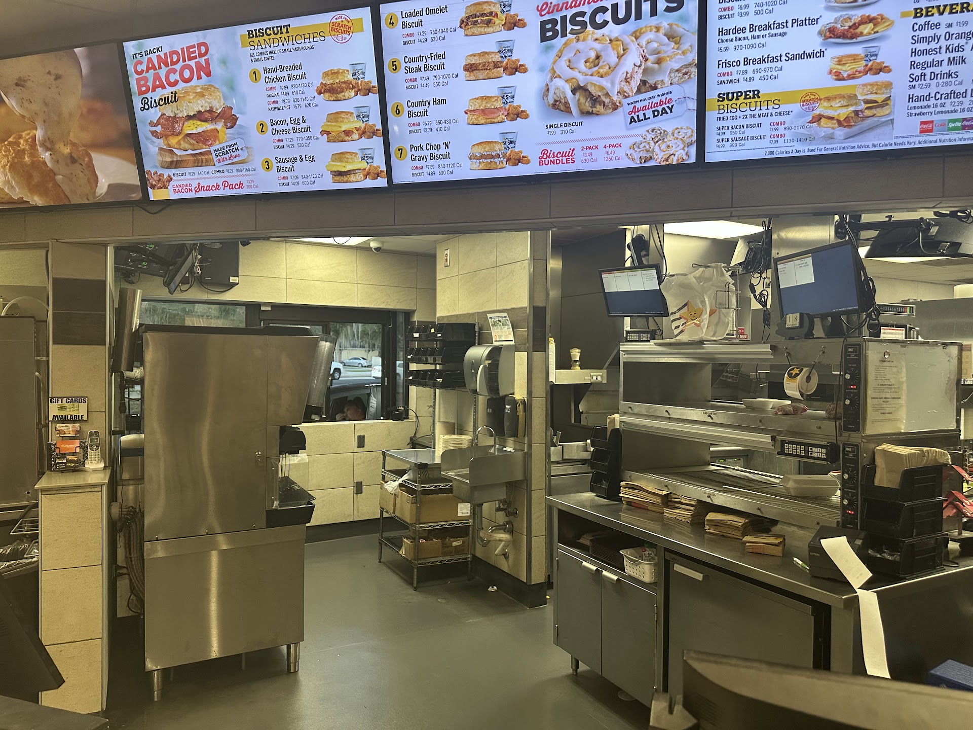 Read moreAh Hardees. My go-to fast food place as of recent. That is, it is... What it is. A fast food place. That's not to say the food isn't delicious! This particular location is reliably fast and usually kind staffed. That is of course, on a revolving door of staff. I usually get chicken tenders with their hot honey sauce which is easily listed under tasty and comforting. Their fries always come out crispy and perfectly salted as well! I will say the few burger products I have tried I liked much more than other fast food establishments. I did love their limited time prime rib sandwich with amber sauce. The option to substitute your bun with their soft and buttery sour dough is also a great addition. As for breakfast, I've been quite often. It's probably a personal thing, eating too much of their gravy does not make me feel pleasant- that's fine though, when you consider how light and fluffy their biscuits are, as well as the scrambled egg. Juicy sausage, and savory ham are also parts of the lovely aray of breakfast goodies you can enjoy. As mentioned above, this is ny go-to fast food place. They have exceptional service speed with a decent price point... And their...