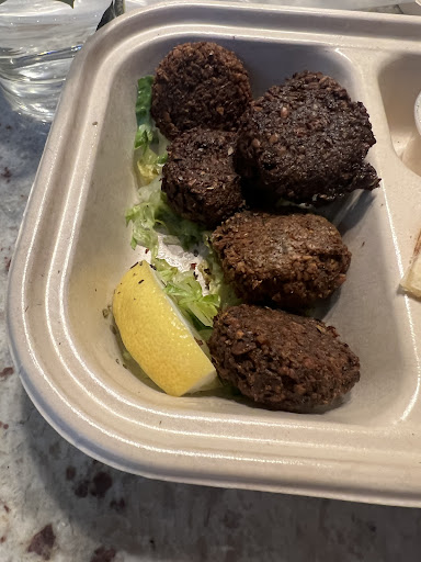 Falafel platter literally had 5 pieces of falafel, the sauce and pita. That’s it…. Didn’t get my side. Lettuce was BARELY included, had to use lettuce from my refrigerator. No onions, no tomato, cucumber etc… like you would find at any other Greek place that serves platters. And feta is $2.00 extra charge on an almost $20 VEGGIE platter? Come on.