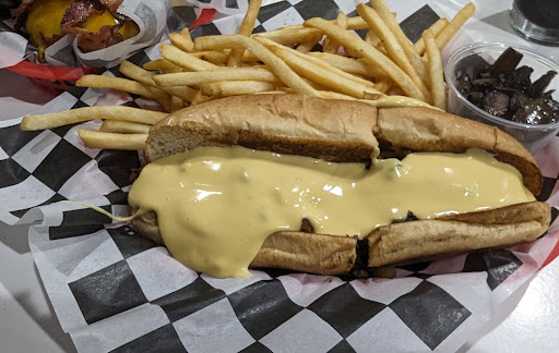 Philly cheese steak with queso: amazing! Steak, onions/peppers cooked until tender.