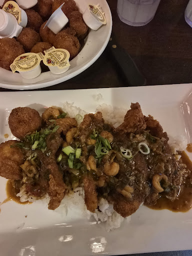 I had never been to this place before but because of a stroke of luck and an odd craving, my husband and I decided this was the place to go. We assumed we would get stuck with the dinner rush because we had waited until about 6 on the dot and the parking lot was full. As soon as we entered we were greeted and seated. Hunter was our server. Hunter was amazing! He was polite, personable, knowledgeable, and fast. He kept our drinks full, sometimes without my even noticing, and he checked in often. When he did that, he wouldn't do like many other servers, who will walk by and see that we didn't currently need anything and leave, or the other option, ask if we needed anything and then when we said no just move on to the next patron. Hunter made sure that when he came and checked on us, he actually had something interesting to say. It could be the weather, it could be games, it could be about how the food was. Speaking of food. Hunter knew about anything on the menu and an apt description of its taste. When my husband mentioned wanting a platter but didn't like oysters he was quick to mention possible substitutions. Even aside from Hunter's greatness, the food was excellent as well. I got the Cajon Ravioli, a delicious fried cheese Ravioli covered in a nice crawfish sauce, that I was scrapping my plate over. Our shared appetizer was the Jacked up shrimp. Some shrimp cooked then coated with a pepperjack jalapeño bacon type mix. I didn't taste a lot of shrimp in the cheese but it was a nice little something to start our meal off with. My husband got the seafood platter, with a side of gumbo added. That gumbo was awesome ( I took a few bites)! And he didn't have a single problem with any of his food either. Hunter wasn't the one who delivered our main course, in fact both he and us were surprised at how quickly we got our food; but as soon as he noticed it was at our table he was there asking of we needed any extra condiments and refilling our drinks. All in all, everything was great. To be completely honest, even of the food was just ok, I would still be happy to go again just for the great service. Fortunately, the food was good too, so I'll definitely have to make another visit soon! P.S. Keep Hunter around. Give him...