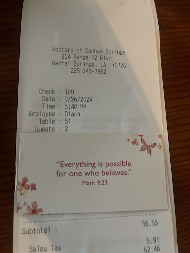 I love great service — don’t we all? But because I had service that went above and beyond, I felt the need to share my experience. Callie at this Denham Springs location was nothing short of amazing. She was so personal, bubbly spirited, and genuinely helpful. She thoroughly went over the menu, discussing prices, telling us her personal favorites, and making sure our order was perfect. She checked on us several times throughout our dining to ensure we were doing okay and even brought us new beverages before we had the chance to ask for a refill. She was just that attentive. I wish every restaurant had a Callie! After we left, we raved on and on about how great our service was. The food was hot and wonderful as well (so kudos to the kitchen staff), but seriously the experience with such a great waitress made the food 10 times better. Can’t wait to visit again. Hopefully we get her as our waitress each time we return!...