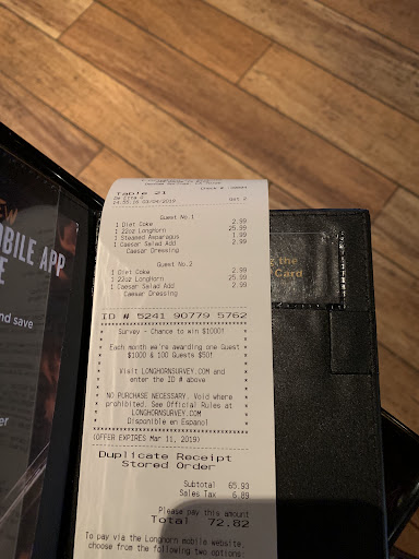Read moreWe took our 14u softball team there after playing ball all day, we even called ahead to make sure they could accommodate a party of 35-40 people. They assured us they could we would just have to sit in different tables, which was fine with us. We called ahead to let them know we were in they way again not to surprise them. We get there and get seated the players and two booths parents and a bar top of 6 dad's in the bar area and then a group of 18 in the far back. I was seated with the group in the far back. We had a young lady with long blonde hair that was a very respectful and spot on waitress. Our food was good, we got refills and bread in a timely manner even as busy as she was. One of the players came back to our table to see her mother because she was hungry and when we ask what did she order, she told us and then she told us she hadn't even gotten her food yet.. it had been almost 2 hours since they ordered. We had ordered after them, eaten and paid and we're getting ready to leave. They still had NO FOOD!! I went and talked to my husband, the coach. He had no food and the rest of the men at the bar top table did but the kids didn't. He told me how rude the waitress had been to them and that the players had requested refills and couldn't get them even though they asked for them repeatedly. He also,asked for more bread and didn't get any for almost 40 minutes. We have gone to Longhorn's in many different states and have never had this poor service before. I understand that we were a big party but we called ahead to make sure they could handle us. If they couldn't they should have said so because we would have went somewhere else. We had tickets that were charged for the wrong steaks and food over cooked and very upset parents that just wanted to get their kids and get out of there. One of your waiters even came out of the back and confronted one of our mothers questioning what she had said to someone by asking " Did you say something about me?" . And she wasn't talking about him, to him or anything because I was sitting there, but he came out of the kitchen and got right up in her face. It was extremely unprofessional and your Manager never apologized for anything or even tried to make everything better for these parents or players. I will not recommend this location âšď¸âšď¸ because of this Manager and those two rude workers which is a shame. Because there are so e good waitresses that work there and she was tipped by me well that night because she deserved it for the service she provided. Those two deserved what they got from the tips.... We will return to Livingston/Denham Springs to play softball again but we will not ever return to this restaurant to eat due to the poor management and some of the rude staff that he...