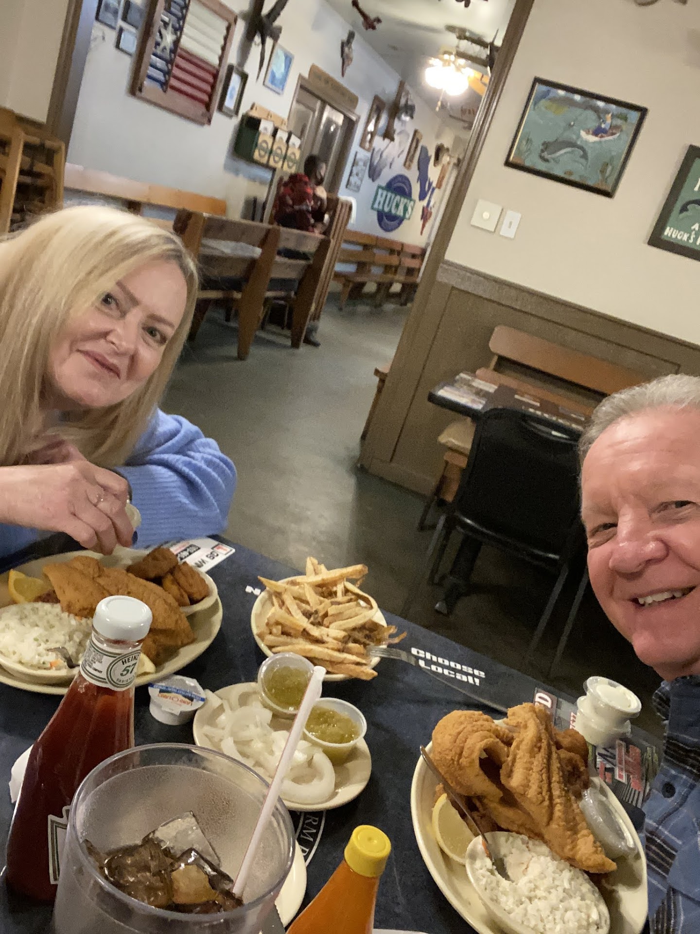 UPDATE May 2024: Good to get back. We don't often make a 51 mile one-way trip just for catfish but it was worth it again. Ashley was our waitress and she did a great job for us and other tables. Very popular for weekday lunch hr with several family groups and co-workers on lunch break. We got 1/2 catfish order each with four different sides. Great meal combo and for leftovers UPDATE Nov 2023: This might become a Thanksgiving Day lunch tradition; this time we came before. We needed a road trip and coming here was as good as any. Besides we needed to get into OK to cash in our OK MegaMillions ticket. Great food again and excellent service. We only got three fillets for two us which was plenty and the best side dishes. UPDATE Nov 2022: Back for another serving of catfish post-Turkey day. Lesson learned one fillet is more than enough along with two sides. Unless you are very hungry and/or want leftovers. Not as crowded as our first visit but a number of families there with kids out of school this week. Lots of wait staff on hand so very good service.MAR 2022: Great excuse on a nice spring day to take a road trip here from Plano, TX. Huck's was recommended to us and we visited some of the places we lived/worked/shopped 40 yrs ago in area. One fillet with two sides was more than enough but we went for the apricot cobble with ice cream as well. Way too much. Meal was great dessert not so much. Very popular with the seasoned citizen crowd and locals. Off the beaten track. Lots of seating inside so don't be worried about all the...