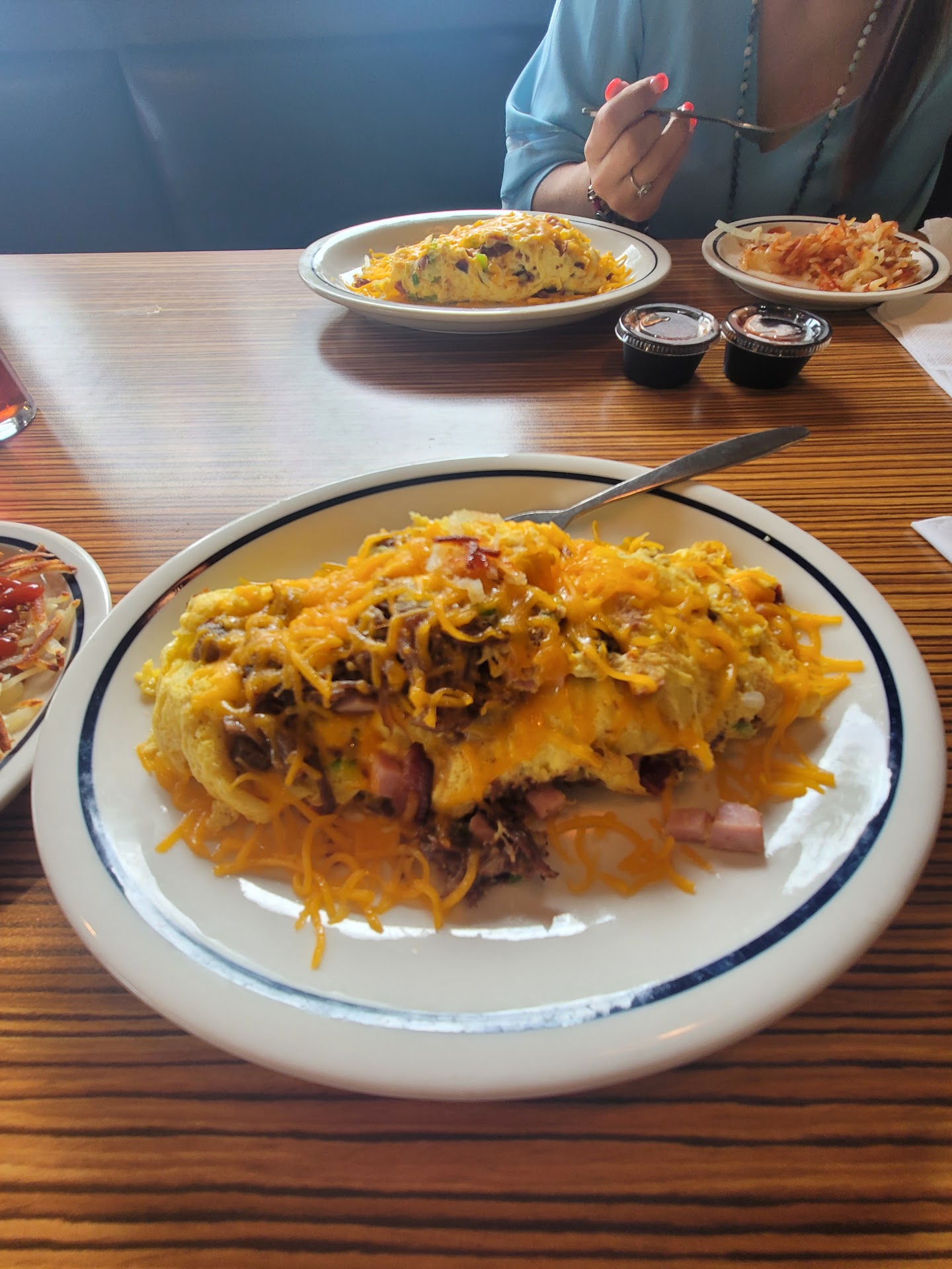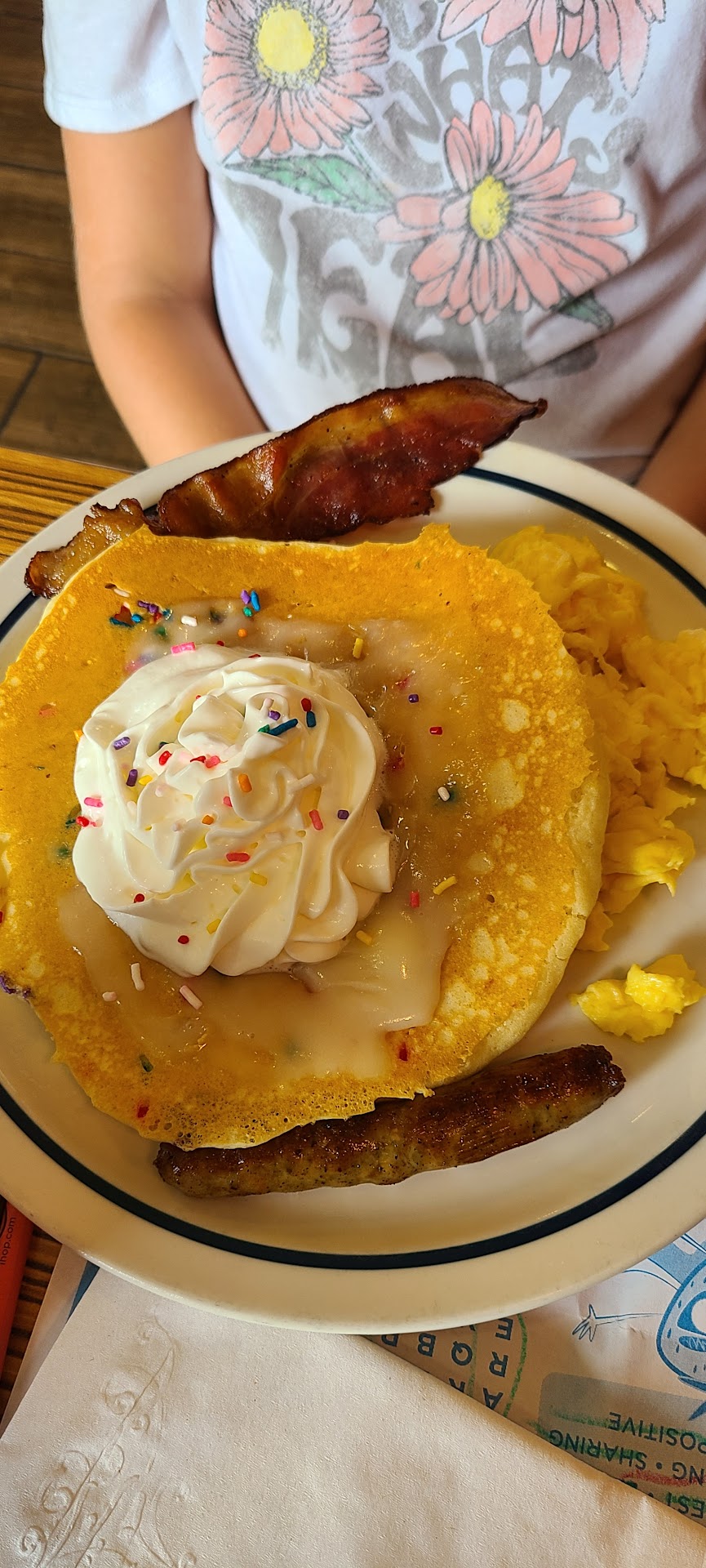 Read moreWe've been going here for years and have never had an experience like this one. When we got there, there was only one other table sat, and the people were coughing...like a lot. They sat us one table away from them. Gross. We waited almost an hour for our food. Listening to a group of people dislodge massive amounts of phlem right next to us. My husband and my son sat with empty drinks in front of them for 15 or 20 min, my iced tea had 2 ice cubes when it got to the table, and was warm by the time our food came out. It's 111 degrees outside, guys! We had to ask for our pancakes that were supposed to come with our meals. The server told us they were already ready, but it was quite a while before we got them. The food was mostly fine, but my son's burger was dry and the bread seemed stale. Our server was nice enough, the 3 times we interacted with her in an hour and a half. Maybe she needed more training...? Or just a tiny little bit of GAF? The whole experience sucked, honestly. I could think of a million better ways to spend our money. I doubt we'll...