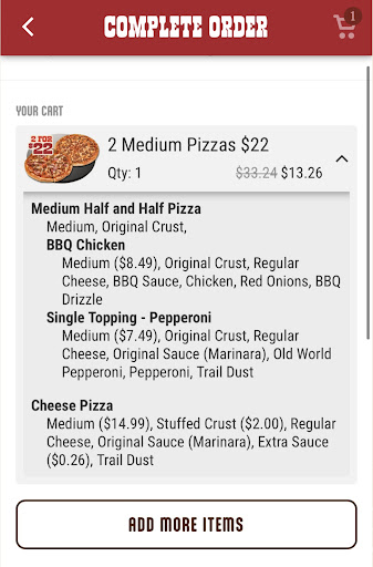 Read moreTo make a round trip of 50 miles to have you guys make the pizza wrong is exhausting anymore but, this is the first time the manager didn't want to make it right. Ordered two large Tuscan pizzas, barely any sauce on them. We decided, meh okay... The kicker, we ordered a large pepperoni pizza also, and got home and it was thin crust. It should have been the original crust. My husband called and the manager argued with him over the phone that he would give us 75% off the next time. Uhm...When your business makes a mistake, you take accountability for it. Next time an order of a pepperoni should have been FREE. Also, the manager said, "well, at least you got a pizza". Who says that ish to a paying customer????? You guys are the ones that made the mistake, not us. I called back b/c that wasn't right. I got the same smart mouthed excuse from the same manager (Riley) and, the same comment "at least you got a pizza". Our total was around $68. We usually buy chicken too and walk out paying close to $80-100. Your location just lost...
