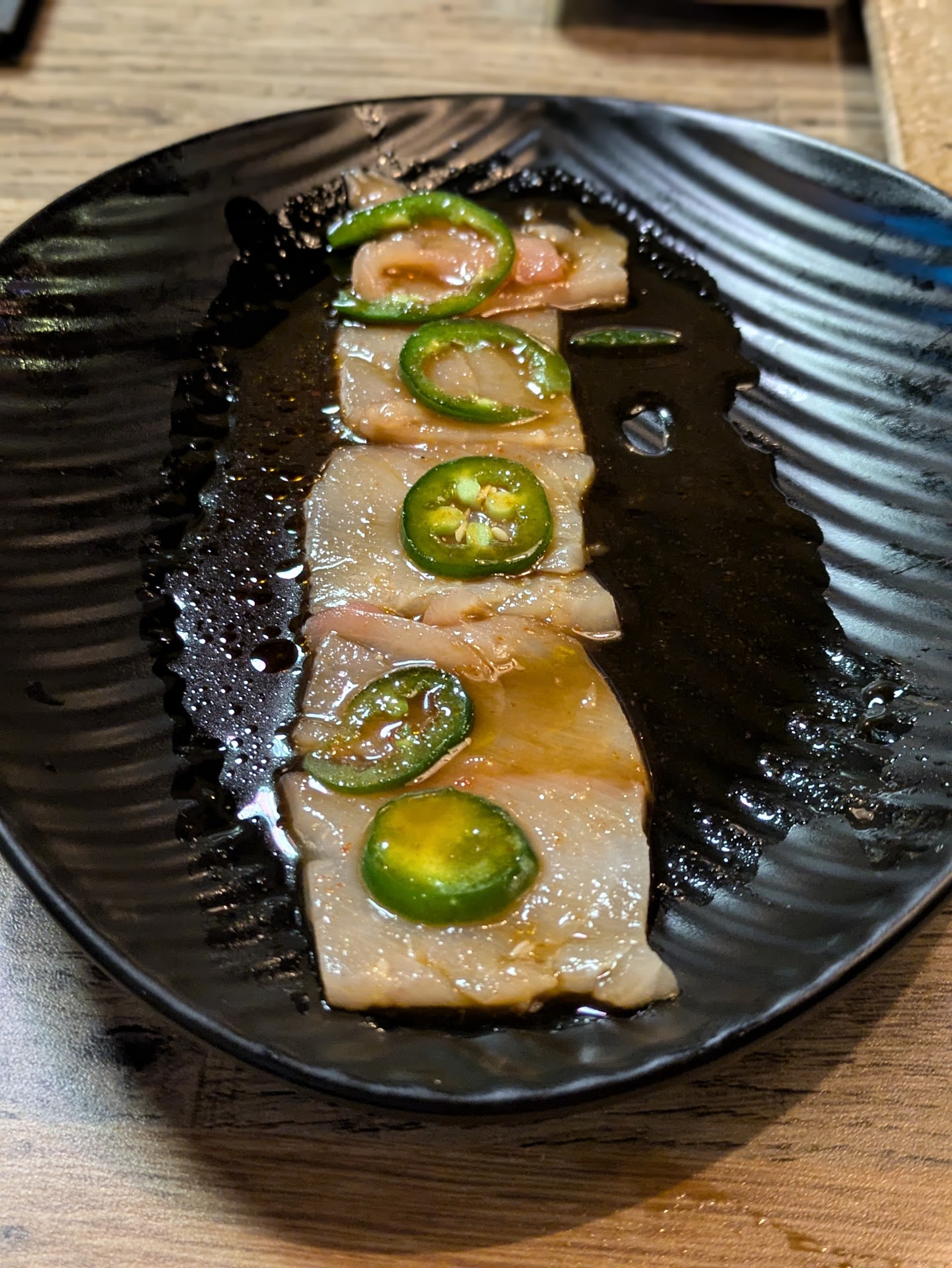 The Coconut Corn Chicken Soup is dangerously goodâso good I would've happily left with a gallon jug. The Seaweed Salad was vibrant, sweet-tangy, and oddly fun to eatâtrust me. Gyoza arrived perfectly pan-fried, tender, juicy, and corner-to-corner delicious. Then came the Devil Eyes, their addictive take on jalapeĂąo poppers tempura-style, and the Yellowtail with JalapeĂąoâbasically sashimi from heaven.