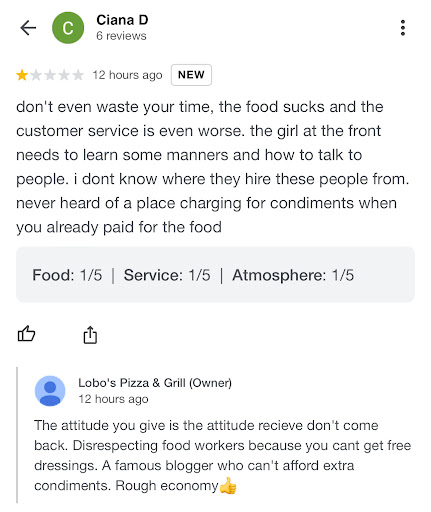 Good for the owner. Doesnât mean I haven't gotten terrible food from you before. The fish was beyond not edible, and the street corn was disgusting to say the least. Iâm not calling you because Iâm not driving another 12 minutes for you to correct something that shouldnât have been an issue. Face it, the street corn was old and the fish was probably made at 11:45 when I ordered it and reheated when I said to...