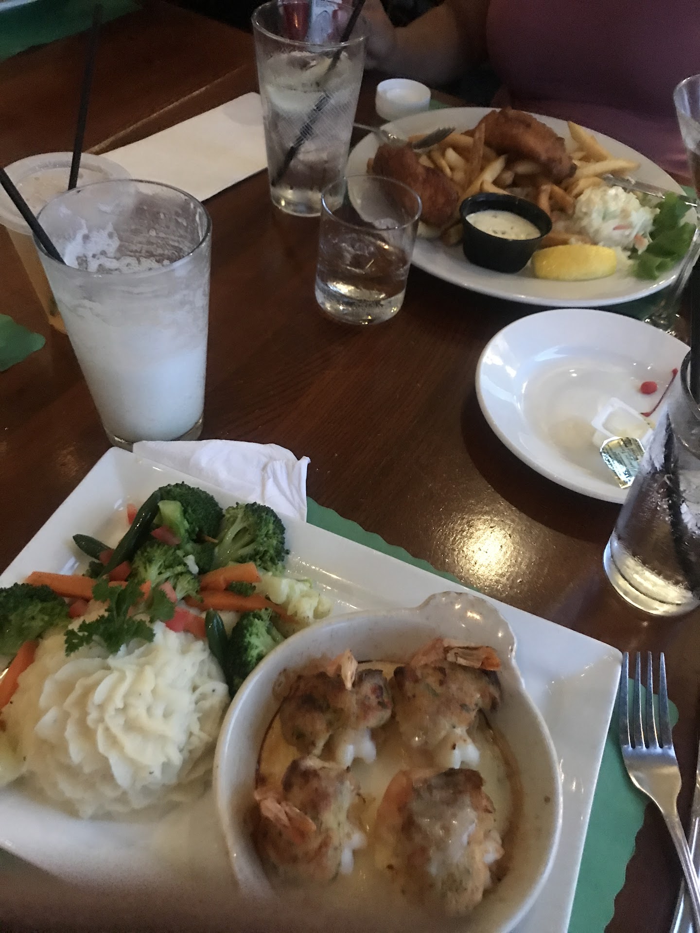 The chowder has always been one of our favorites on the Cape. A good mix of clams and potatoes and it's very creamy. The seafood Alfredo was very good. A great amount of all seafood, vs some that go heavy on the fish and light on everything else. I thought the sauce could have used something to create a bit more depth of flavor, but it was creamy and very good. I would order it again. The fish sandwich was delicious. The cheese complimented the fish very well and did not over power it and the fish was crispy and well cooked. The fries were fine but a great portion size. The only real negative was the service. We didn't have enough water the majority of the dinner and did not see our waitress that often. But, the meal was filling and a great portion for the price. We will be happy to return and hope for a repeat on the deliciousness...