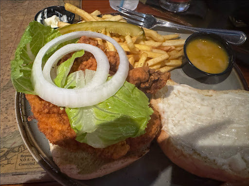 We went to dinner here on Friday 8.18.23 at about 7pm for our daughter's 27th Birthday. There were 5 of us in total. We were seated, right away, at a high top table- which was great. Our server was excellent. We ordered some drinks which came right away. My husband ordered a burger, I ordered the brisket sandwich. My daughter and her girlfriend ordered a pasta dish and buffalo chicken. Our son got chicken tenders. My husband, son and my dishes came out first. The server went to get the girls dishes. During that time my husband cut his burger in half. It was absolutely raw. He ordered medium. When the server returned with the other meals he looked at the burger and said "did you order it mooing?". We laughed and he took it back to the kitchen. All perfectly fine. When he returned with a new burger that was not raw, a manager was with him. The server was gracious and kind, apologizing for the error and said he is taking the burger off the check. The manager then stepped forward, and in a VERY rude tone asked my husband to cut his burger, and said "I want to make sure you aren't going to send it back again". It comes off ok when I write it out, but believe me when I say... it was said in a rude and condescending tone. My husband kept his cool, even though I know he wanted to tell that manager to shove the burger where the sun doesn't shine. It was our daughters dinner and we did not want to make an issue. They did take the burger off the bill, which we appreciated the SERVER very much. The 2nd burger was just OK. The kids ate their meals, which they reported as "pretty good". My brisket was pretty bland, but saved by the horseradish sauce which was delicious. We won't go back. Even if the food was amazing, we didn't like the feeling of being talked to like that from anyone, never mind management. I'd like to stress again, it sounds in writing like the manager was just making sure my husband was happy with the newly cooked burger... which would have been appreciated. He was RUDE. He was visually annoyed and had a wicked tone. We were embarrassed, like he was implying we got the 1st burger and some how reversed the cooking process to make it raw and complain. Funny, it was our SERVER who said first that our burger was still Mooing!!!! Anyways, I know less than great reviewers get torn apart so I have thought over a week about if I would review. I decided I'd rather give an honest review about an ok meal with a great server and a terrible manager, than not...