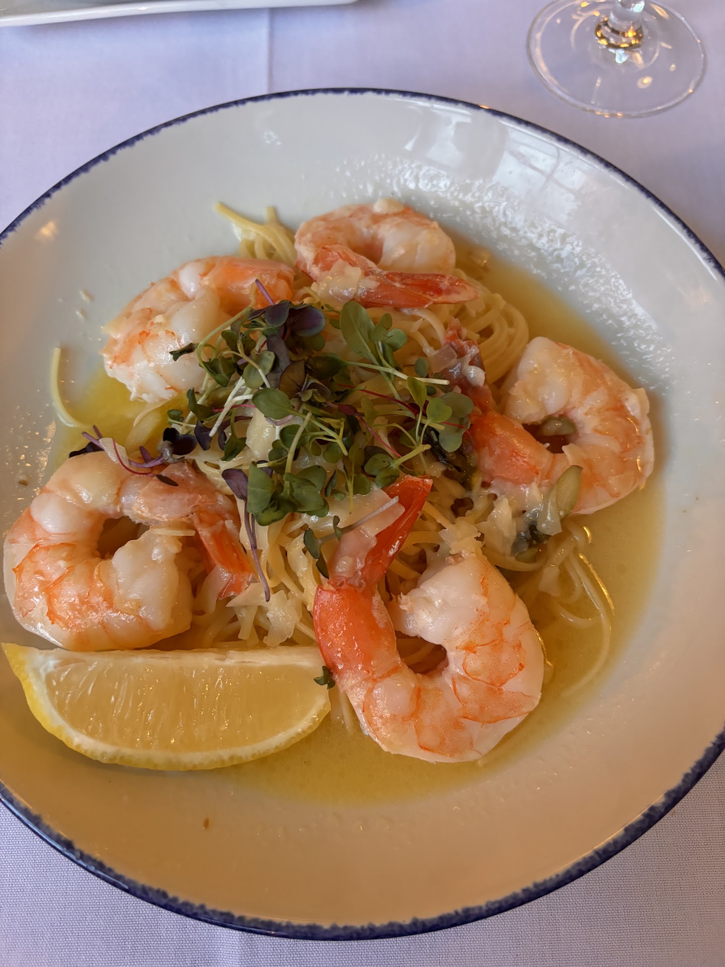 Because it was new, I expected it to be a bit hectic. The restaurant itself is very noisy, but the tables are separated a fair amount, leaving room for each party to converse without interruption. Our waiter was very noticeably nervous, but was attentive and helpful. He recommended I order the lobster fettuccine.