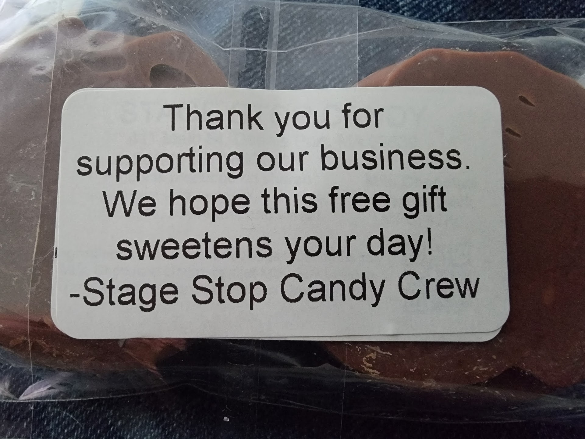 Read moreHave been going to Stage Stop Candy for a few years now. This is our go to candy store on the Cape. We go several times a year. It's owned by a wonderful family and the kids work the counter. My girlfriend mentioned that it was my birthday last weekend and when we got home noticed a free gift in the bag. They have very good homemade chocolates, truffles, and other various candy including freeze dried treats!!! Yum!!! So if you are ever on the Cape, don't hesitate to get some of the best candy...