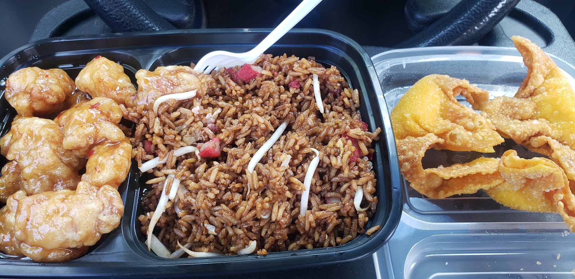 I had the #5 lunch special, “for here.” It’s really a takeout place, but my food was served to my table (booth). Given the reviews, I had low expectations. They were met. Pork did have flavor. Egg Roll was pretty good and had a shrimp inside. Chicken Fingers were decent, not soggy and not overcooked. Yes, they were expectedly oily. I chose the Lo Mein over the Fried Rice. It was fine, but nothing memorable.