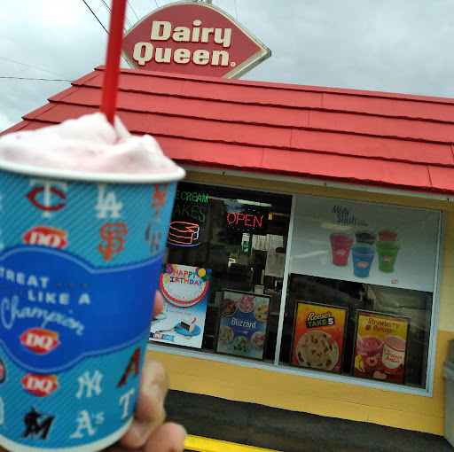 This is a tiny Dairy Queen with two windows for serving customers. All seating is outdoors, including a nice little space in the back of the building with picnic tables in a wooded area. The seating areas are clean and well maintained. The service here is lovely and the staff is very quick to make up orders. Sometimes I'll bring my pup for a doggy cone and they are always happy to make up whatever we order, as well as to answer any questions we may have. They also have a rewards punch card that gets you free blizzard after ordering ten (I think) in a season. This is a great place to stop in for a quick treat while enjoying the nice weather...weather...