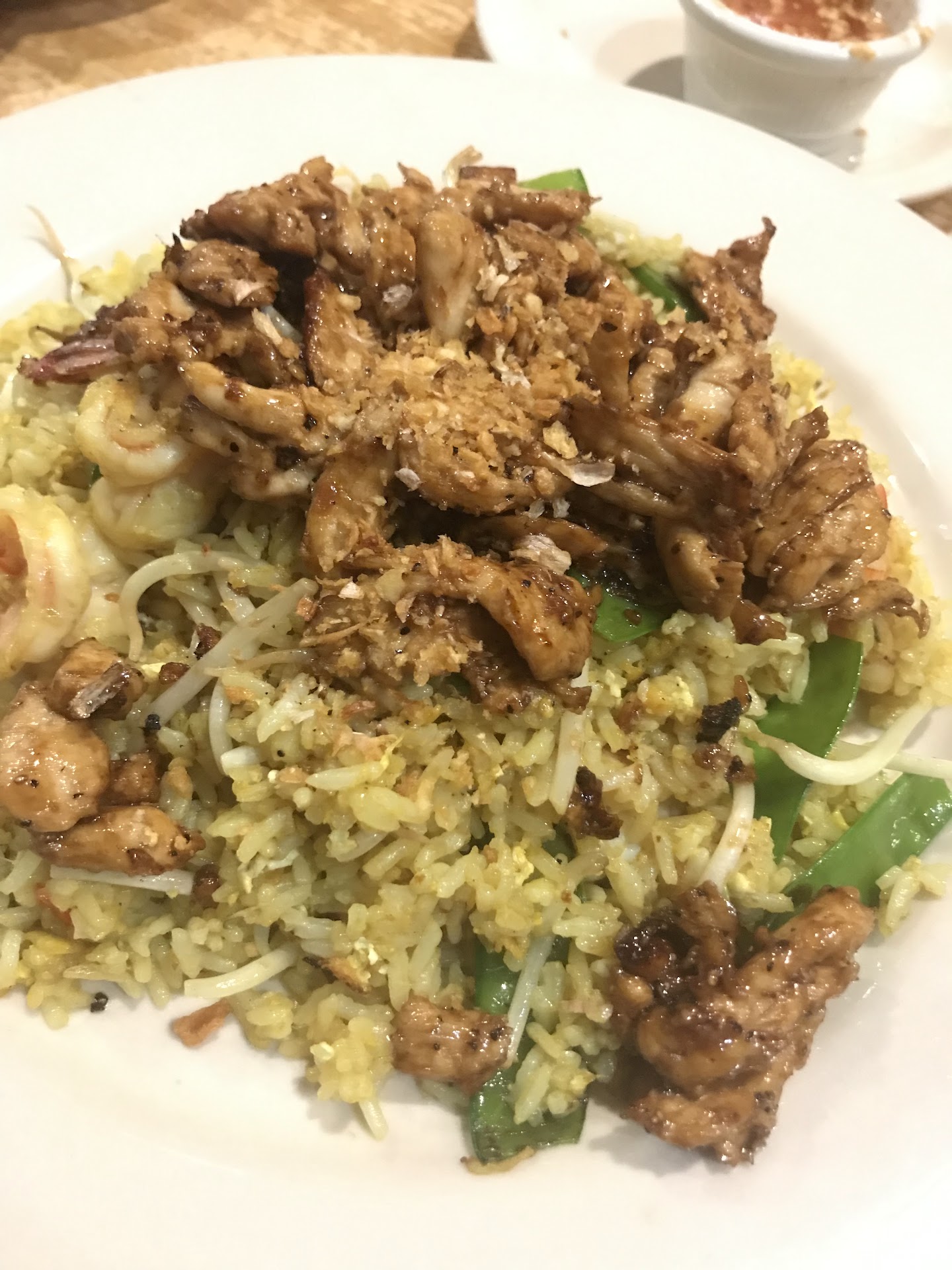 First, the Thai Iced Coffee was served along with the Fresh Spring Rolls. The rolls had this jardiniere look about them, and the tender, translucent rice wrapper was just begging me to take a massive bite out of it. This appetizer was served with a complimentary sweet garlic sauce which I poured over the rolls, watching the sauce run across the rice wrapper and set gently their edges. And the taste, it was as refreshing as the first sip of water after finishing a lap on the running track, but also savory and sweet because of the sweet garlic sauce. It was in my opinion, the best Fresh Roll I have encountered to date. The Thai Iced Coffee was equally delightful, and quite pleasing on the pallet- especially if eaten in tandem with the Fresh Spring Roll.