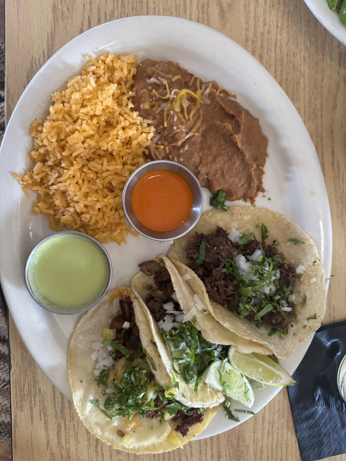 The horchata was one of the best drinks I think I’ve ever tried, and the tacos were SO fresh and delicious. I got the cod and steak tacos and they were absolutely refreshing and perfectly portioned. I don’t eat pork, so the pork-free refried beans were a DELICIOUS new find.