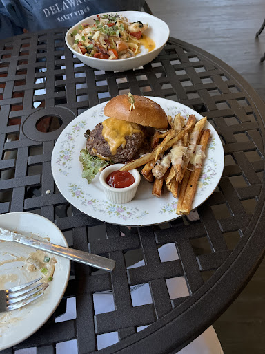 Read moreWhat a lovely surprise dinner place to find on our way home from the beach! The restaurant is in a beautiful, quaint town and inside a remodeled historic house. We decided to eat outside on the front porch because the weather was so pleasant. We had the shrimp toast as a starter. The shrimp was cooked perfectly, the sauce was the perfect creamy addition, & the bread was delicious! I had the farmer’s pasta for dinner and that was to die for. All of the veggies were fresh & I realized the noodles were gluten free after I ate it. The noodles were wonderful and I would not have guessed! My husband had the burger & he mentioned that it was very fresh, juicy - but not soggy. His fries were fresh, minimally seasoned (he said they may benefit from a bit more salt but it was not a big deal). We both felt great after we ate! We told our awesome waiter Fred that we were celebrating our anniversary & he provided us with a complementary cheesecake - which was outstanding. It was hot honey peach and we were in heaven. So good. We truly loved our experience here! Everything exceeded our...