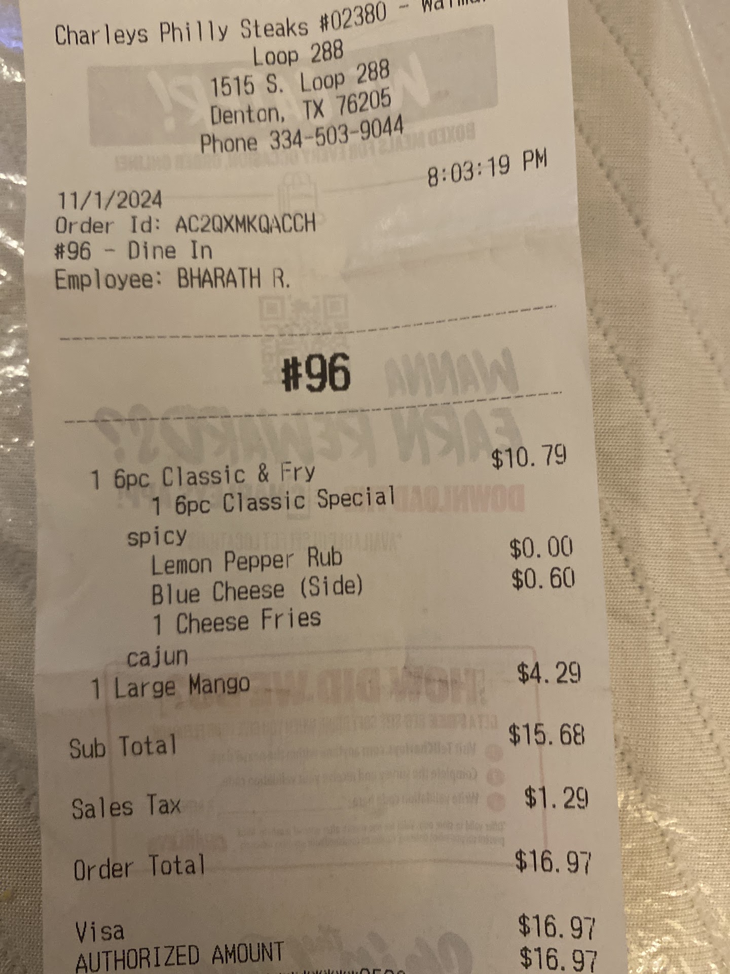 The young lady at the cash register was very nice-(6-4-24)-about after 7pm. But my sister first ordered some classic chicken wings, 30 of them for $46.70 something cents. It was the biggest mistake she made, because when we got home to eat them, they were very dry, and over-cooked, and they tasted very old! Plus, they weren't seasoned just right, and we were very disappointed!! They could have done better than that! We're not going back to this restaurant anymore-that was just too much money to spend for such poor tasting wings! Plus, I ordered fries for $3.78--a large order, and all we got was a skimpy little paper cup full of fries, but they at least tasted fresh. That's just too much money to spend for such sorry tasting wings and little cup of fries-(though good). Not going to return, but to the nice lady there, we'll simply...