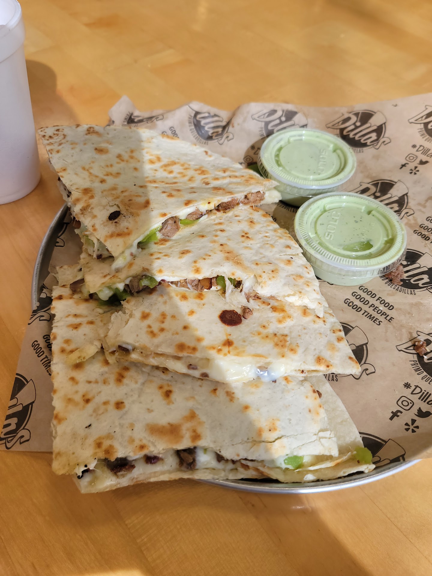 Read moreI could not wait to try this place! I went today 06/22/2021. I ordered through the drive thru. The person taking the drive-thru order had a wonderful customer service voice! That alone made the small wait worth it and I hadn’t even tried their food yet. Next was the person at the window. She confirmed my order (it was perfect) and took my payment. I don’t live super close so I am always worried that something will be left out of my bag but that was not the case tonight! I even saw them take every thing out of the bag to make sure it was all correct! I did wait a little time in the line but it was not tooo bad considering they are busy and brand new. They apologized for the wait and gave me a coupon for a reg. Dilla. It was not needed at all but totally shows they are all about customer service!!