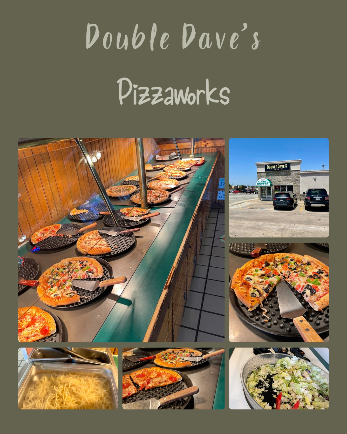 Read moreI got here for the buffet a fair bit after the lunch rush today, so most of the pizzas weren't fresh out of the oven, which is perfectly fine, because it was really fricken good anyways! And that's saying something when your pizza is so incredibly good, it still tastes great even after a bit of time on the serving tray! Proof positive they make perfect pizzas! I will HAVE to come back at a time that is during the lunch or dinner rush so I can try their pizza super duper fresh! They got a pretty well stocked salad bar too, lots of options to choose from, and I love a big salad! They were still bringing out a couple hot pies as I ate, but I already made my plates of food anyways, and had a bit too much on my plates already, which is my own doing. I still made sure to try their cherry dessert calzone/stromboli thingy when it got brought out, that was DELICIOUS!!! The deserts look and taste crazy good! I wish I had left room for more! I'll remember to next time. Gotta make a smaller salad and a little less pizza, because I wanna try the other two options it looked like they had! Plus, they have themed specialty pizzas for each month, which is pretty dang awesome! You gotta try ordering one of them at least one a month, everybody should get to try them all! I like CiCi's buffet just fine, it's like the Starbucks of pizza buffets: decent pizza, decent salad choices, actually really good chicken soup and brownies, just a decent and streamlined quality. It's good, but there are better out there. And Double Dave's is infinitely better quality! It is absolutely worth the extra little itty bitty cost to come here instead! They'll be seeing more of me during the next month or so while I am in town, that's for sure!