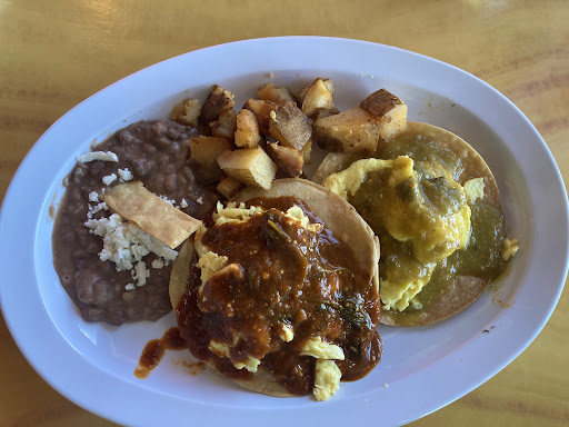 The huevos divorciados was really good. You get a red sauce tostado and a green sauce tostado. The green was amazing and my favorite. The red was a typical huevos rancheros type sauce and was really good and had a kick. The potato's were baked and not fried which was a little disappointing but still good. Refried beans were top tier.