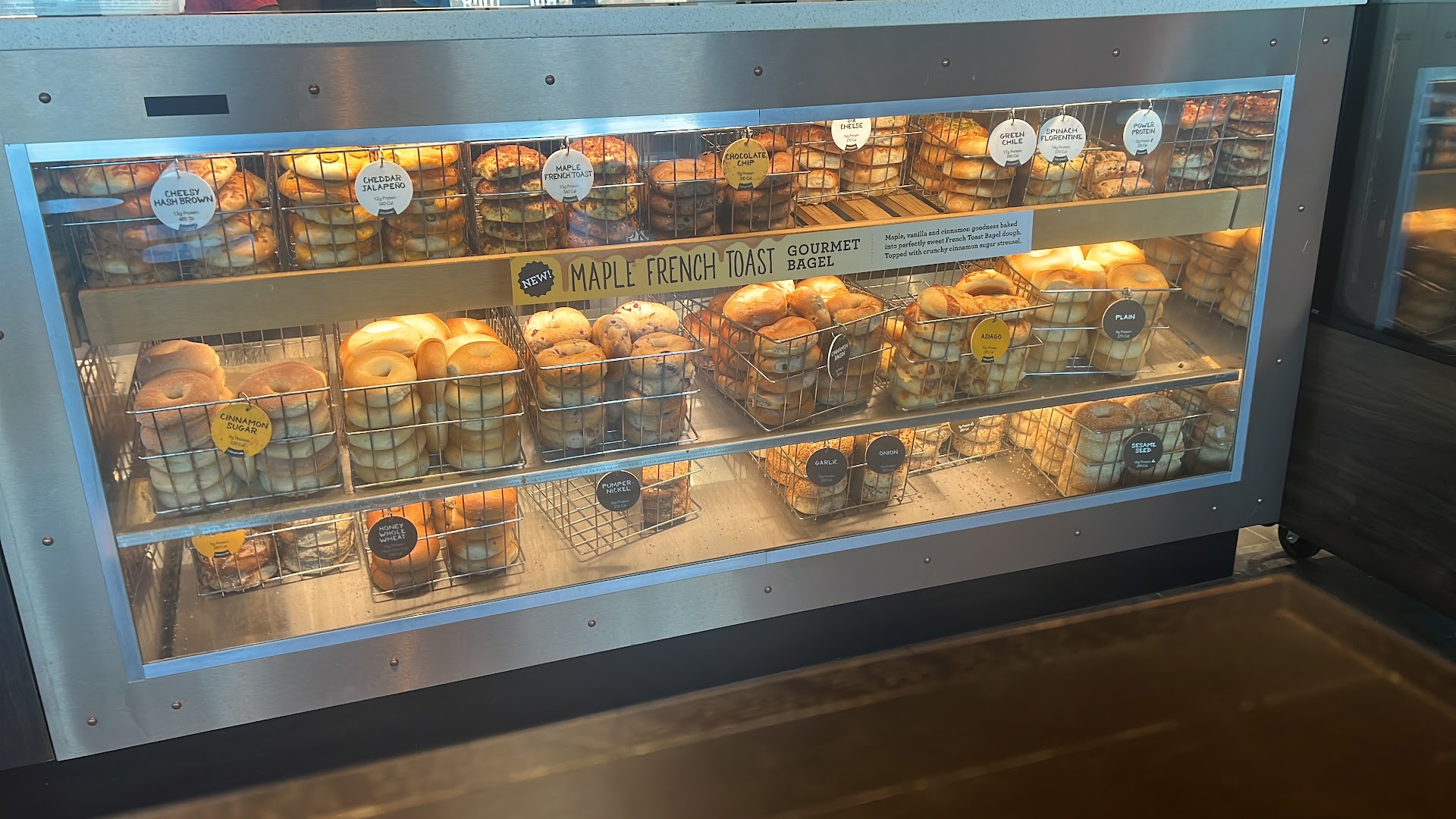 Ā Ā Ā Read moreI moved to Texas from New England and have been struggling to find bagels as good as up North, and so far Einstein Bros. has been the best Iāve found. I like the convenience of being able to order through the app and just walking in, grabbing my order from the shelf, and going. However, Iām always disappointed with the toasting of the bagel. I always order my bagels toasted, but usually itās only has a little bit of toasting along the edge. Almost seems like they put the spread on the bagel and THEN put it in the toaster, so nothing actually gets toasted. I also wish I had more control of what bagels I would get when ordering a box of them through the app. It lists a set variety of bagels, but I wish I could customize what flavors were in the box when I order. One time I ordered a box, and it wasnāt even the flavors that were listed when I ordered it; they seemed to substitute some flavors for others without telling me. If I had more control over what goes in the boxes when I order through the app and if they did a better job at toasting, Iād give this place 5 stars, but those things leave me slightly...