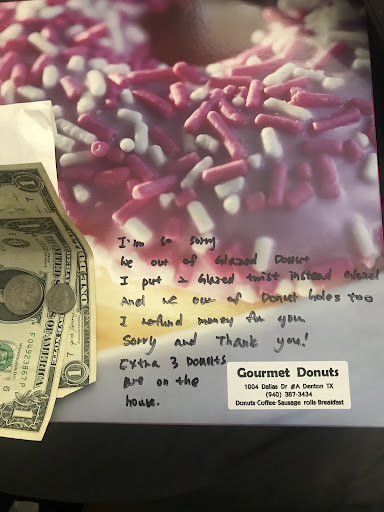Read moreOrdered thru UberEats and unfortunately they were out of glazed donuts (I ordered two) and they were sweet enough to attach cash refund in a bag taped to the box with ADDITIONAL fancy donuts (2 eclairs and 3 fancier donuts that probably cost more than glazed!!) that were on the house. Very pleased with this experience as they could have called to let me know and I would have been fine with it. Except, they went above and beyond with their service! I will be ordering again from them as this is very wholesome with or without a pandemic going on. Kudos to Gourmet Donuts,...