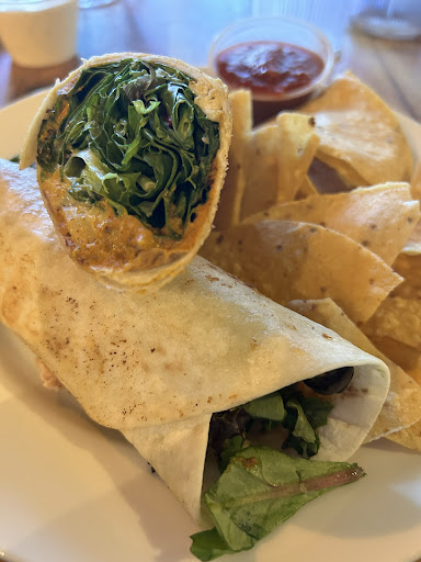 šÆ The Hummus Wrap An actual moment of zen, yāall. Pistachio hummus, mixed greens, avocado, red onion, and a jalapeƱo goat cheese sauce all hugged in warm pita, topped with tortilla chips for crunch. Add chicken, bacon, or portabella if you want to take it from 10 to spiritual awakeningāI did. It was so good, I went back three days later like a woman on a mission. Pro tip: pair it with the chips and salsa for a combo that feels indulgent but still somehow⦠wholesome. Like you could still go do yoga afterward (you wonāt, but you could).
