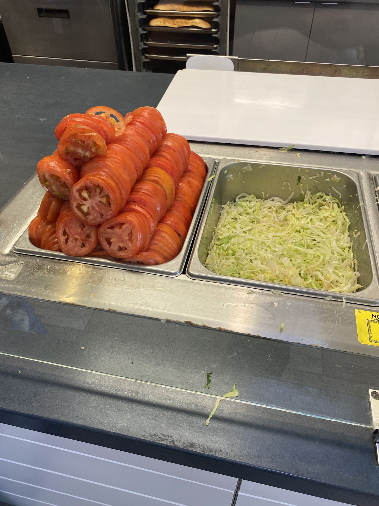 Jersey Mikes had been my safety net when it came to a sandwich shop that I can trust to be sanitary and fresh, but man was I disappointed this time. As someone who had worked in food service for years I know how coolers work, and usually there is a "fill line" on the pans so that the contents stay within the temperature safety zone. I am not exaggerating when I say the tomatoes were stacked half a foot high above the top of the pan, and it was evident that they were in bad condition with how dark and soft they looked. The lettuce was also visibly wilted with pink coloring. It seems like there's at least 5 people on staff and not busy, so such a lazy measure of stacking the tomatoes like this is unnecessary. The staff needs to be retrained on proper glove use and hand washing. Staff were using the register while also texting on their phone with gloves on. Also when they thought they were out of sight they were vaping with gloves on in the back. I hope they've never dropped their vape or phone on the floor or used them in the bathroom because watching them handle these devices with gloved hands is disturbing. Also after doing all of this, they would change gloves without washing hands. Makes me pretty sad it seems you can't trust anywhere these days, hopefully it's just this location that has slacked and not every Jersey Mike's. I will not return to this location in the...