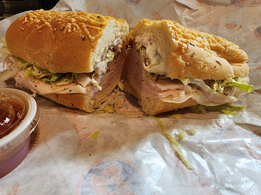 My problem is not with food it is with the to go service. I go to pick up my food after placing an order online, walk up to counter closest to where food is waiting while making sure to not block the cashier stand for walk in customers. Every employee sees me and then avoids making any eye contact after or asks me If I need help with anything or have a to go order. Today after waiting 8 minutes while standing there staring at my food bagged behind the counter and trying to not cause a scene while the cashier is ringing people up, after someone checked out and the cashier was unoccupied I finally said excuse me sir, ignored. I said it again this time louder, now he finally made eye contact with me so I said is that my food and he looked at the bag and said yes then finally handed it to me. I don't understand why they blatantly ignore customers who are clearing picking up food, even if my order wasn't ready yet which it was before I even walked in 8 minutes prior they could still ask so they know who to give it to once it is complete. There was also like 7 people behind counter only 4 of which were occupied and all of them saw me then avoided acknowledging me. Jersey mikes needs to start a pick up shelf like every other place that offers to go orders because this is ridiculous and honestly deters me from eating...