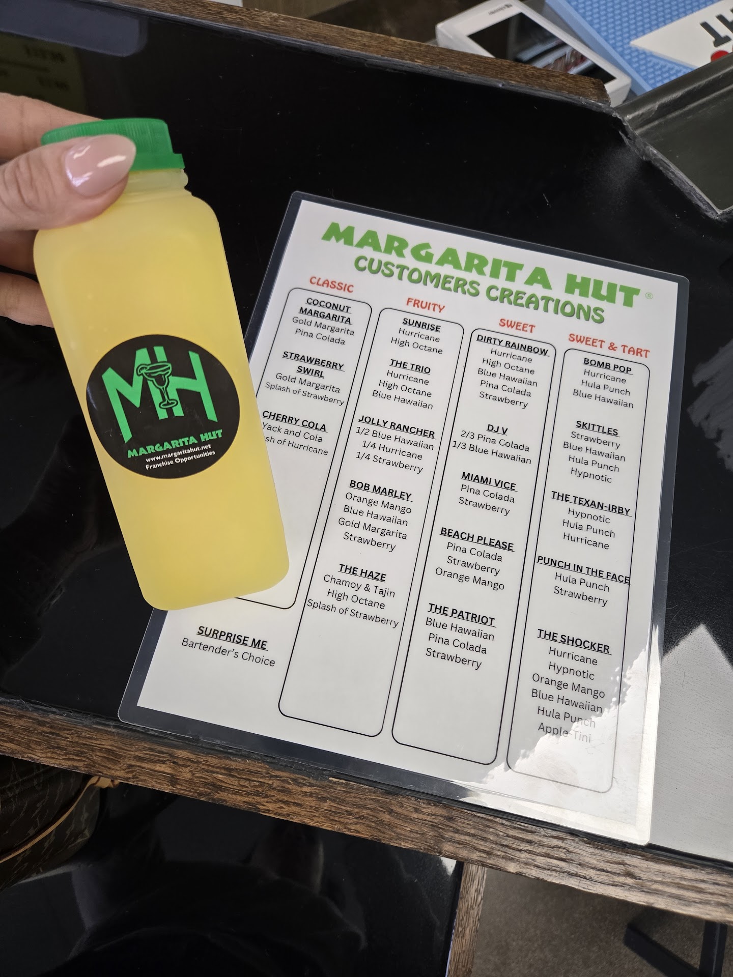 ย ย ย Read moreMargarita hut is delicious, convenient, fun, and economically friendly. You can't go wrong. There are plenty of flavors to choose from, in various sizes or mixes. You can stay and enjoy, or...