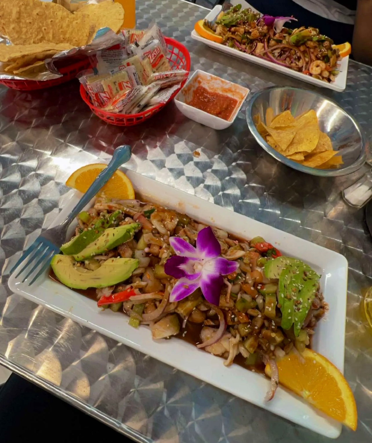 In terms of food, we ordered two entrees—a ceviche and a seafood boil. The ceviche arrived first and unfortunately had a sour taste, suggesting it may not have been fresh. We brought this to the employee’s attention, and while she appeared frustrated, she did offer to replace it. We agreed to pay half since we had already tasted some of it.