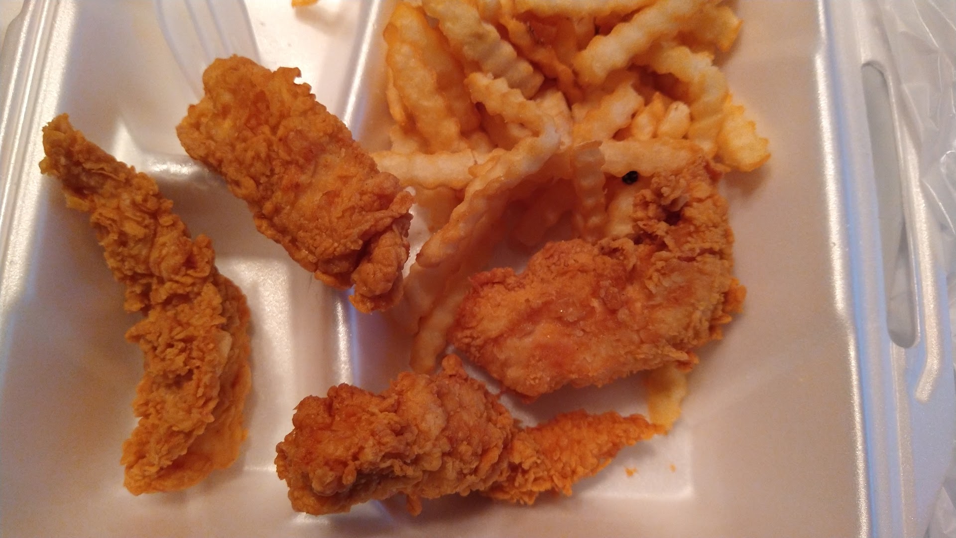 Ā Ā Ā Read moreAfter waiting behind 10 cars in line the picture you see is what I got four of the smallest chicken tenders I've ever seen. Cold beyond cold french fries and one thing of ketchup. I've never been more disappointed in Canes's before in my life. I used to like it because of the dipping sauce. But because of this I will probably never show up again!!! Greatly disappointed!!! Next time it's Chicken Express for me only! At least there I know I'll get treated better in the Drive-Thru, and get a much more filling meal!