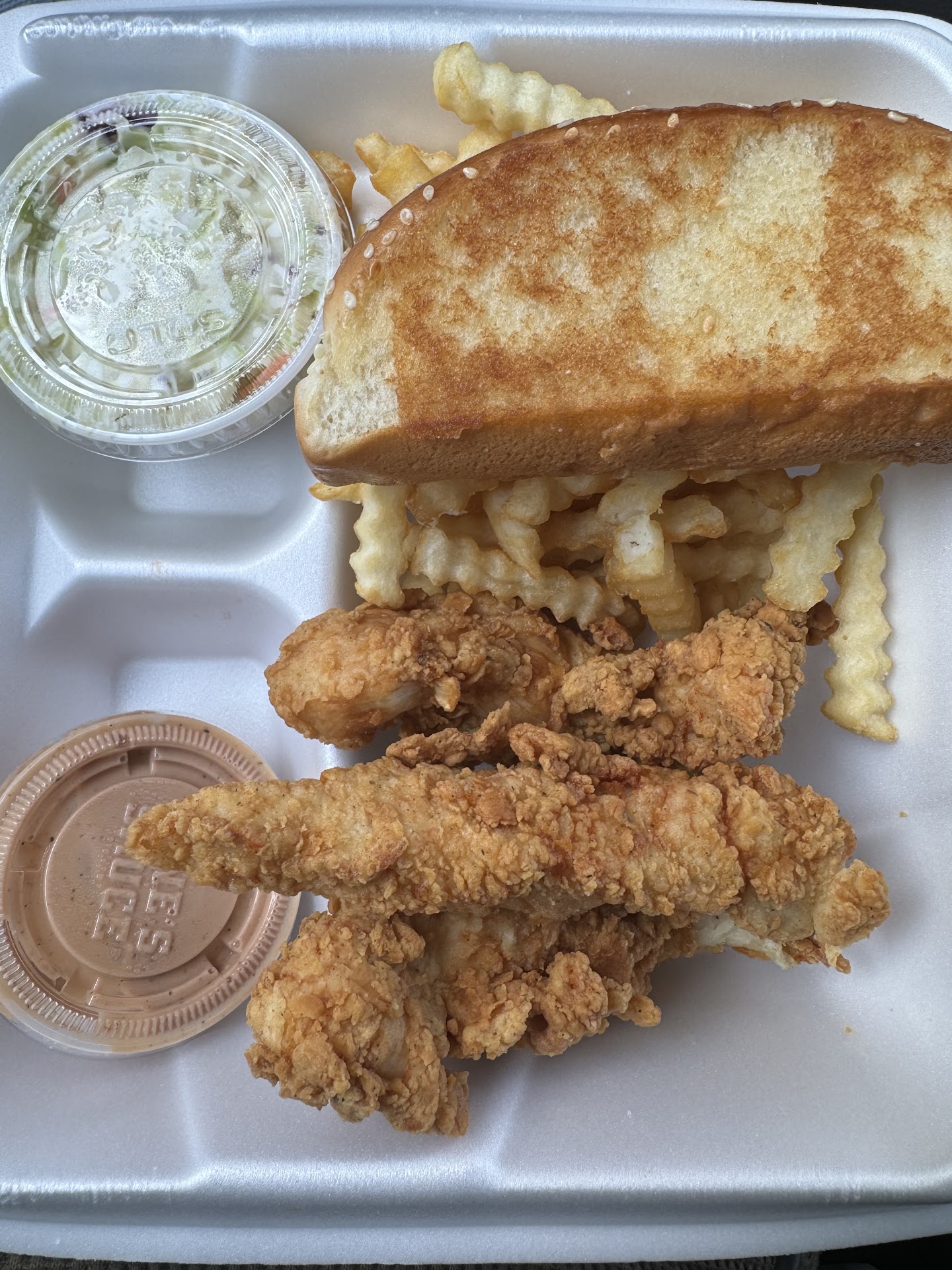 Also, youāll notice the chicken finger portions are significantly smaller compared to other Caneās stores. I have to order a 4-piece to get me somewhat in the ball park of what other stores serve up. About 2 of their strips is a tad over 1 of what others serve. Kinda a bummer on that too because the prices are equal here as they are elsewhere.