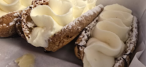 When I picked them up, they were open faced with the chocolate glaze facing down, but very pretty, so I gave them the benefit of the doubt. These are NOT éclairs, not even mediocre. The choux pastry is burnt, probably why you gave me open faced upside down ones to cover up. The vanilla and chocolate pastry cream filling is really nice but still doesn't mask how burnt and inedible the choux pastry is.