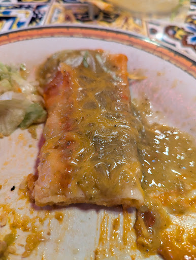 When we got to rosa's, I was very excited with the outside of the building and it looked pretty. When we went inside. I was shocked to see that it was set up like a fast food restaurant. But I am always down for a new adventure so I looked through the menu and it all looked amazing. I wanted to start with something very simple so I got a cheese enchilada plate. He got a burrito and we shared a large chip. The inside of the restaurant is absolutely breath taking a beautiful. I love the chair set up and all of the decorations and the music. It felt just like I was back home. When the food was ready, I was so excited to just start chowing down Until I saw the color of the cheese on both dishes. I fully understand that white queso is not traditional, But I was not expecting the cheese to be a orange brown color. I thought maybe it was a Chipotle cheese. As I have had that many times before. So I eagerly took a bite of my dish and was instantly disappointed At the familiar rubber cheese dip taste. The taste actually took me back to eating a nacho lunchables. To say that I was disappointed is in understatement.