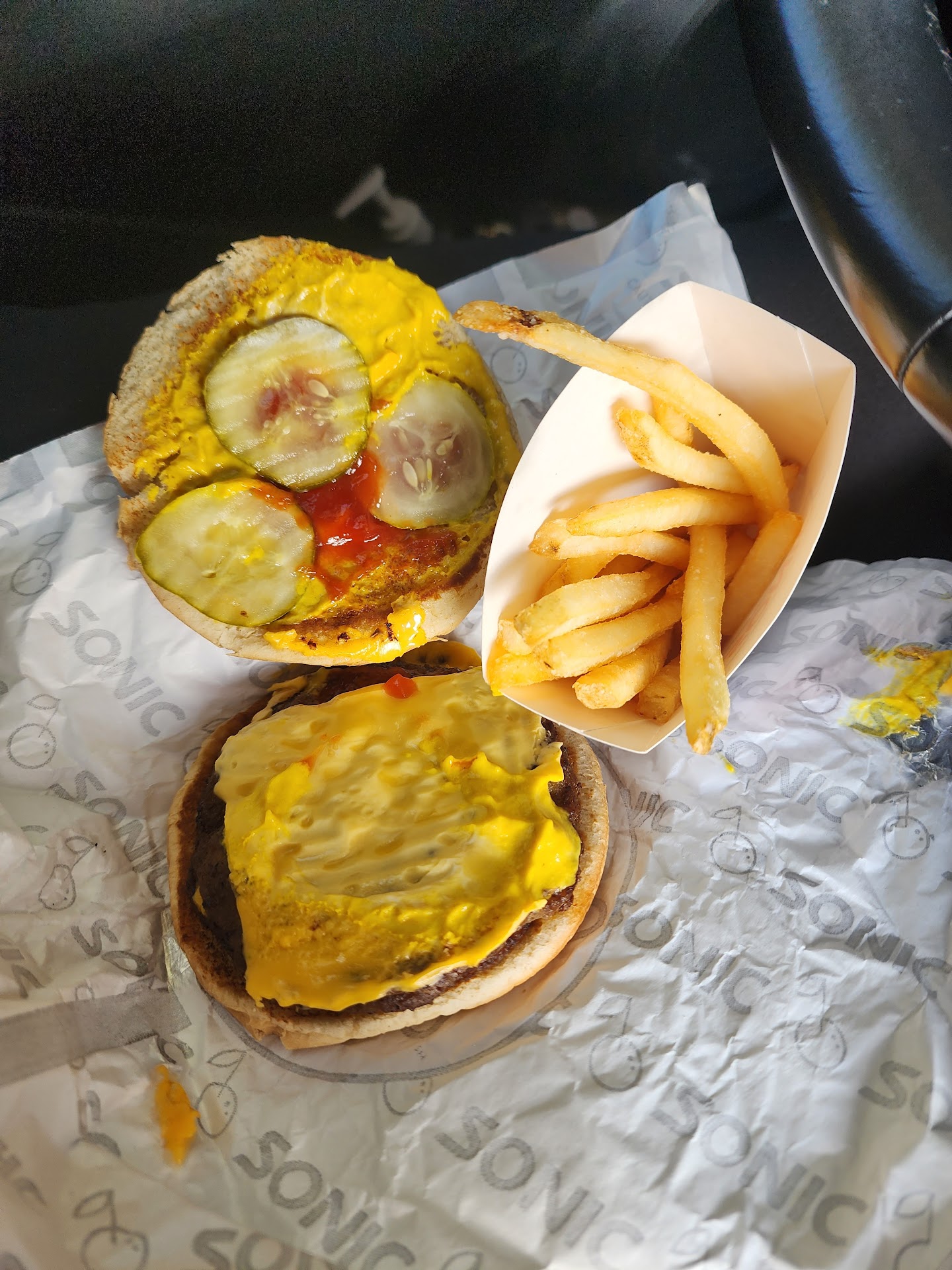 Read moreWe came Monday evening time 8:15pm - ordered 2 #4 with large tots, corn dog wacky pack meal with tots, honey bbq popcorn chicken, and a #1 with fries and drinks. Drinks were fine but the food was not like it normally is at this location for us. After placing our order we waited about 20 minutes with only 3 cars in the lot all the way around. The food we ordered then came and it was ALL cold. The tots and fries also looked like they had sat for some time. The bacon cheese burger toasters (#4) were cold and the toast bread was super hard and dry. We had a total of 2 large tots, 1 small tot, a fry and a corn dog and asked for ketchup and they only brought us 3 packets for several orders of tots/fries. I was super surprised because this location’s food is normally always hot and fresh however I also normally come for lunch (12-1pm possibly the manager is there and more engaged ? idk) during the week. I feel bad because my husband doesn’t particularly like Sonic and I assured him he would love this one and it...