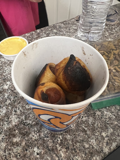 The case had 4 cups of salted pretzel bites and 3 or 4 unsalted pretzels. They had been under the heat lamp so long, they were shriveled up. Ugh. I asked for what I wanted, pretzel dogs for the kids. You know, usually they'll say it will be however long of a wait and they'll have it done. Not at this one -- the girl said that what was in the case was all that was available. That's fine on its face, but the attitude was gross.