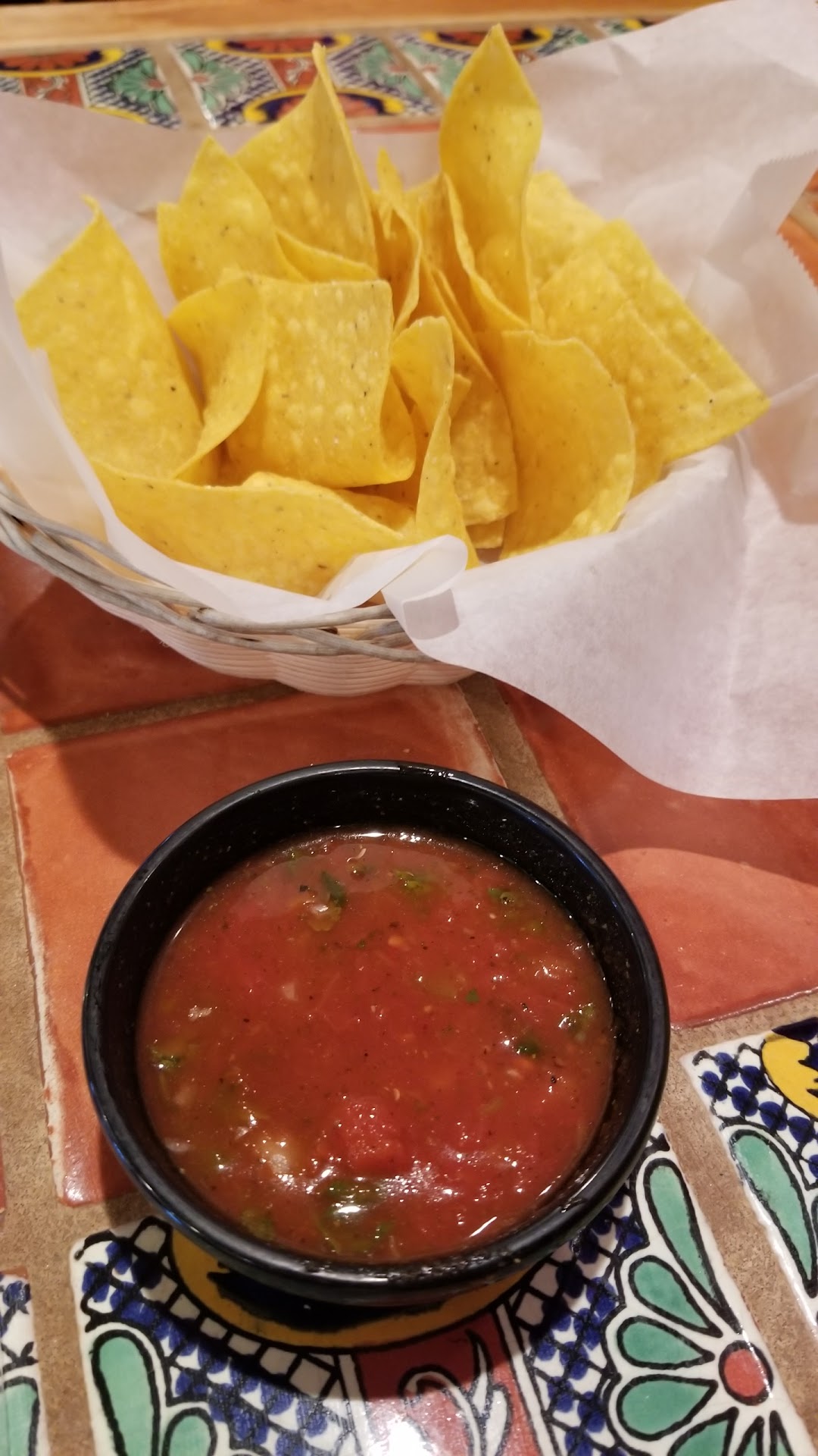 We were seated quickly and and as we sat down the table had a noticeable wobble. The server apologized and quickly leveled the table, which stopped the wobble. She gave us a bowl of chips and salsa. The salsa had a little kick and a delicious flavor. Our server was very friendly and when we placed our order she was very helpful too.