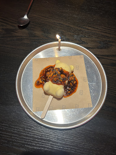 Read moreThis food here is just ok for the hype and how new it is; we expected the dishes to be good across the board but only the tuna crudo, fried chicken, and french onion tartlet stood out to us (no “wow” factor but still very tasty, and the chicken was perfectly fried and moist. Maybe do hamachi instead of tuna crudo to make it less “safe”?). Unfortunately, the burrata was virtually tasteless - the chili crisp was just oil and crisp, it completely lacked salt although the crackers that came with it thankfully added a touch of it, and it could’ve maybe used a hint of sweet. It’s too safe a dish to be so disappointing. The pierogis would’ve been another stand-out except the truffle butter flavor hardly came through when it should be pretty powerful (add shaved truffle on top? Marinate the radishes?). Loved the passionfruit dessert bear popsicle for the tartness of the sorbet but, once again, we didn’t think the chili oil, garlic, or peanuts added much besides visuals and some spice. Go heavier on the garlic!, and perhaps salty Szechuan peppercorn? Crush the peanuts or honey-roast them? They’re too soft whole to go with the sorbet, which might benefit from some crunch. The bread and butter were a must, but I don’t think this dish should shine above the others. Our orders were enough food for 3 hungry women!