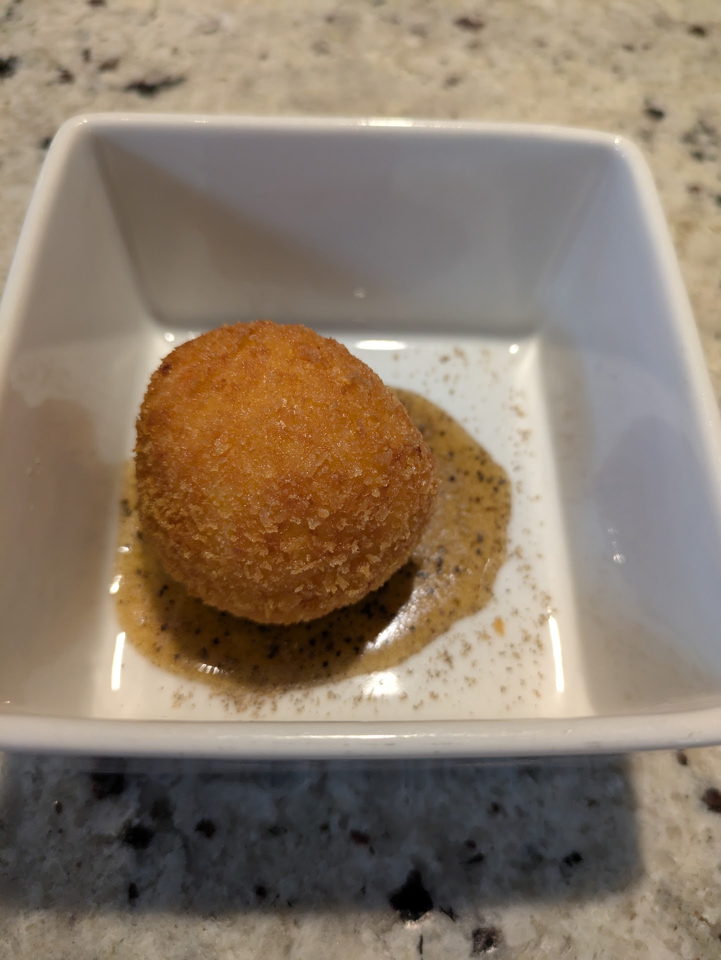 The arancini was a bit untraditional, served with honey. The sweet and savory worked well. Not bad, though a bit small for the price point.